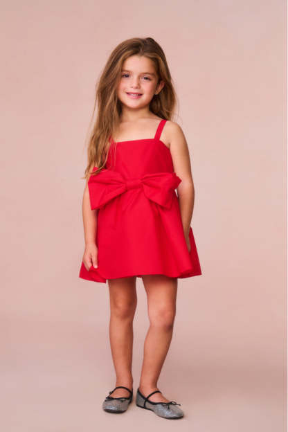 Sealed with a bow. the charming Alejandra Dress makes its debut. Our littles are extra cute with tank straps. an oversized bow at center front. and a sweepy skirt. This pretty mini features our signature bow print all over.
