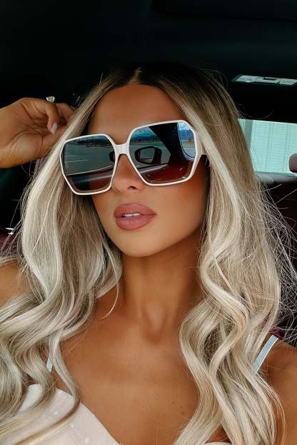 You'll Be Able To Keep The Sun Out Of Your Eyes And Still Look Stylish In These Nude. Square Framed Sunnies!