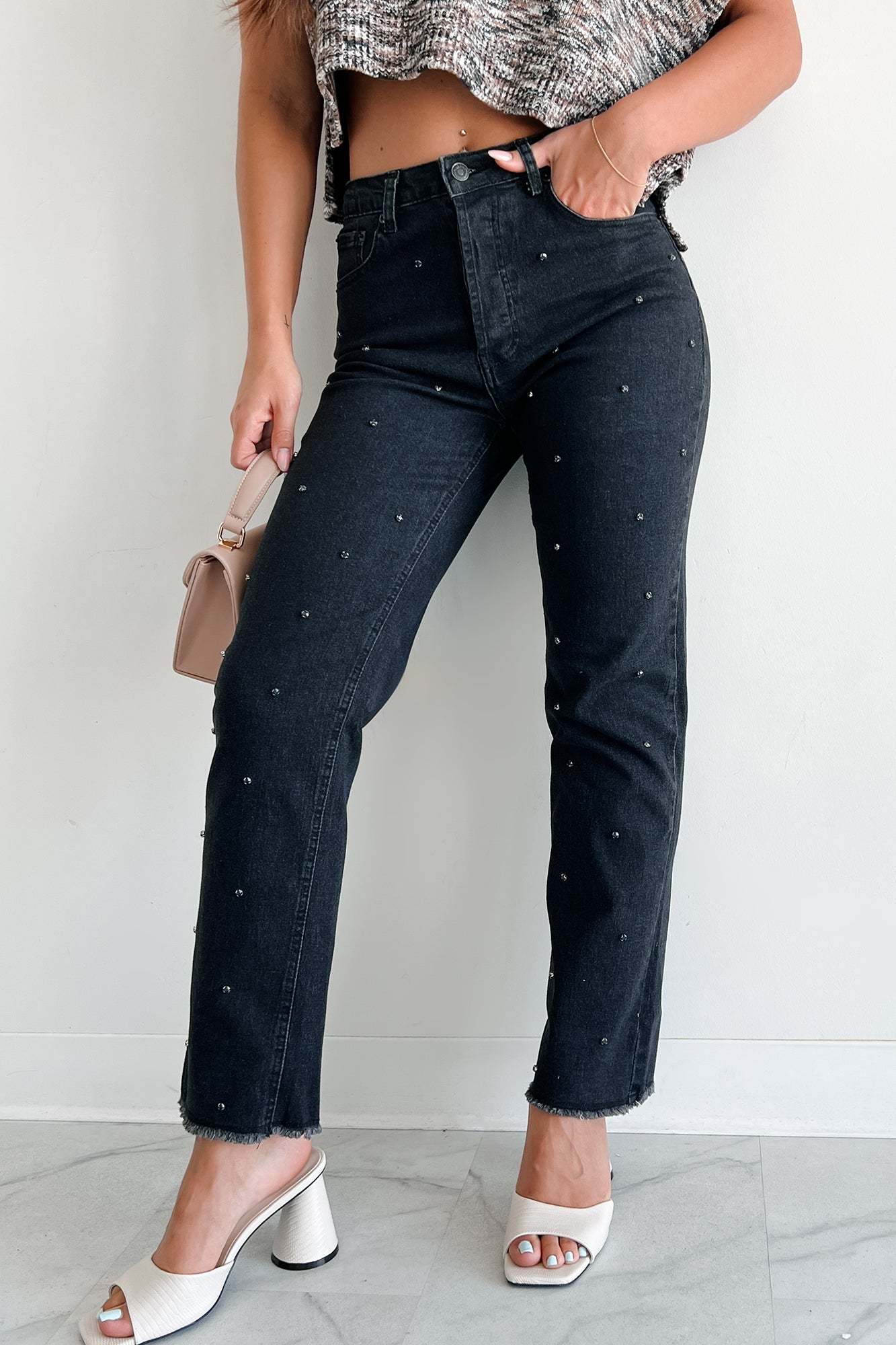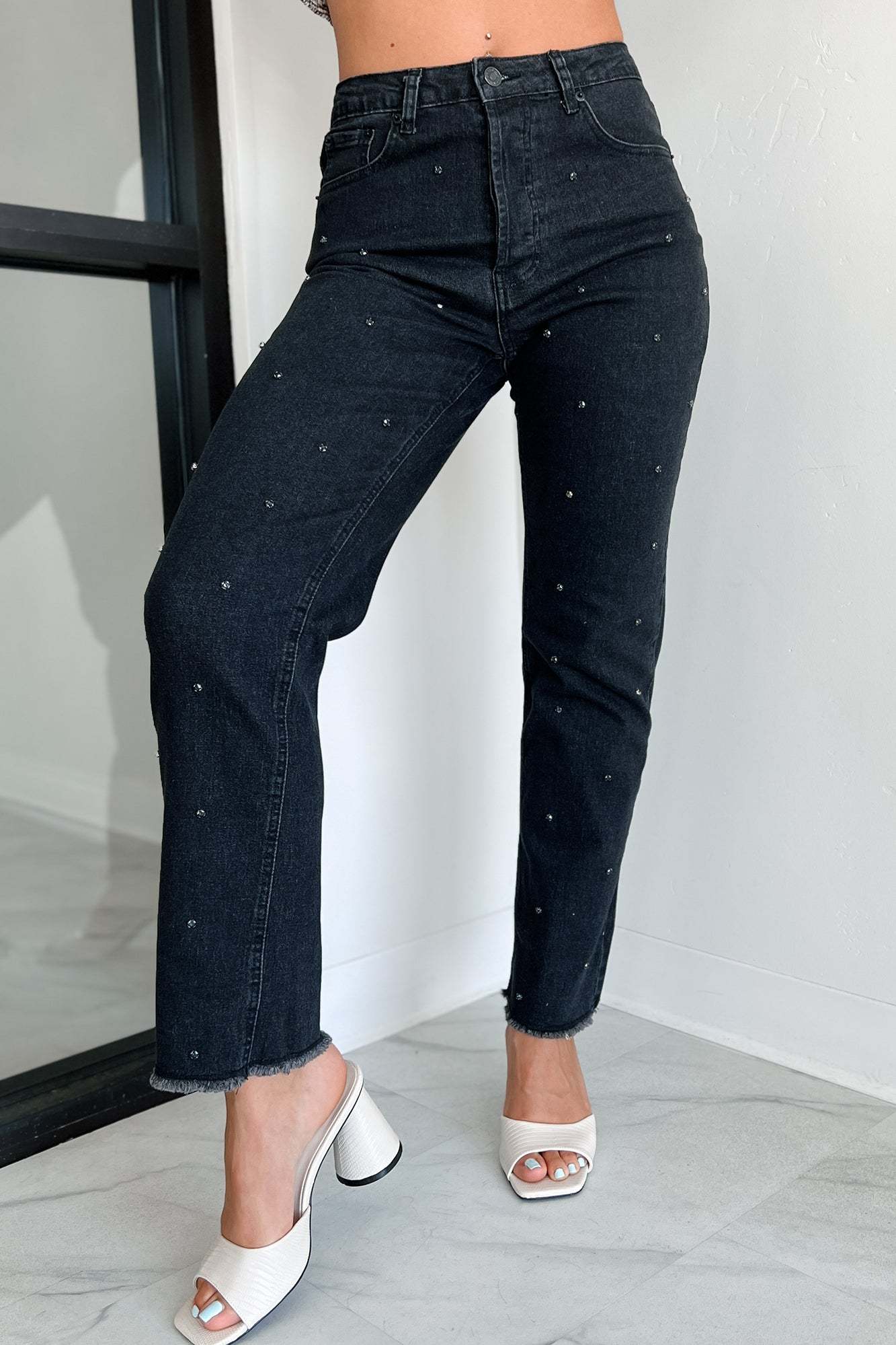 Always Relevant Embellished Straight Leg Jeans (Washed Black)