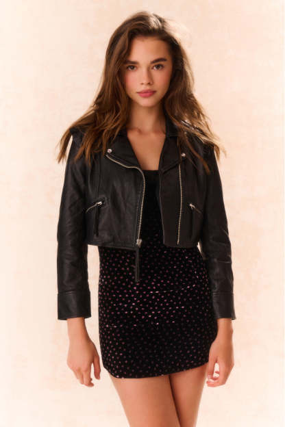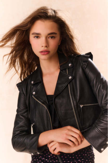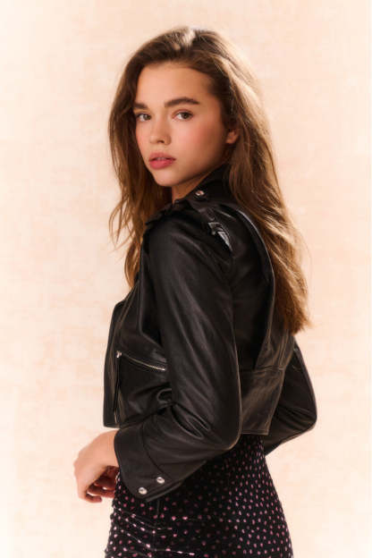 Introducing the Appoline Jacket. Designed from 100% lambskin leather. this soft. cropped outerwear adds an elevated touch to our little loves look.