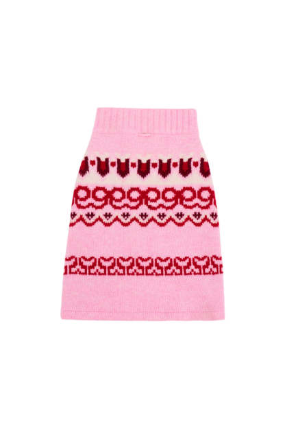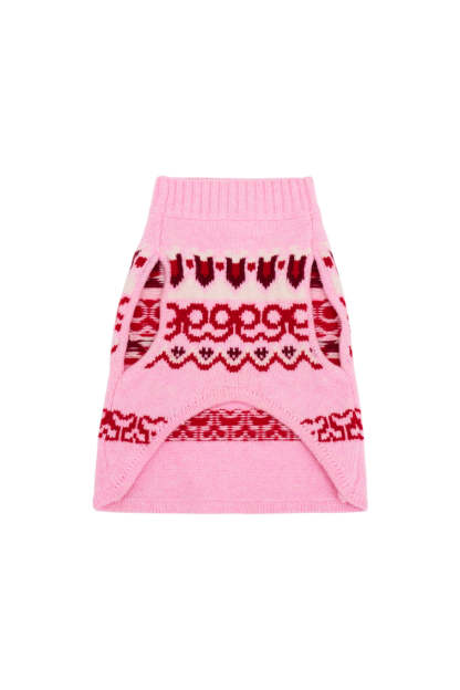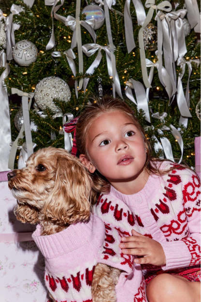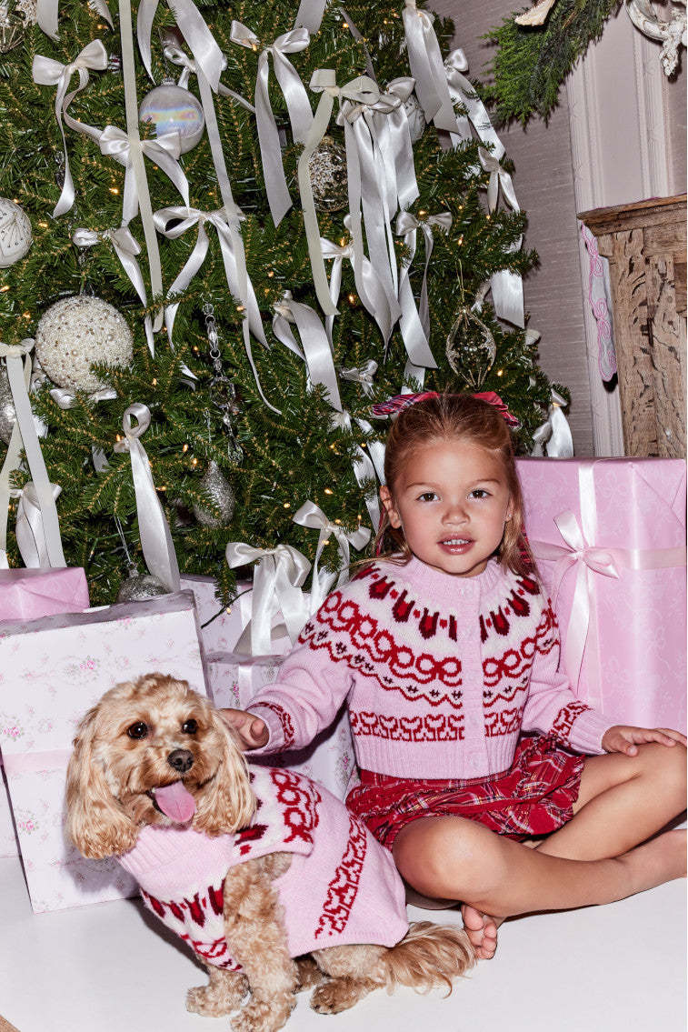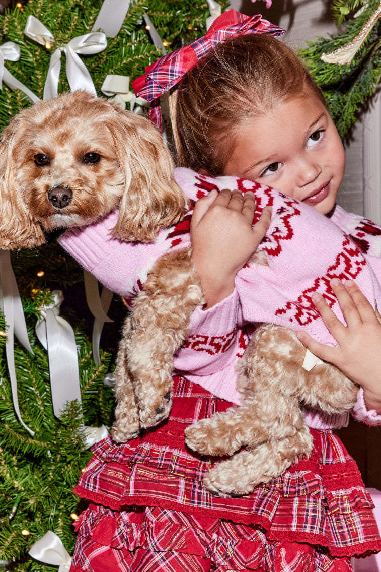 Our furry friends like to dress up too. Keep them extra cozy and cute in this made-to-match sweater featuring a faux Fair Isle pattern with our signature bow design throughout. Match your pup with the Shantae Cardigan.