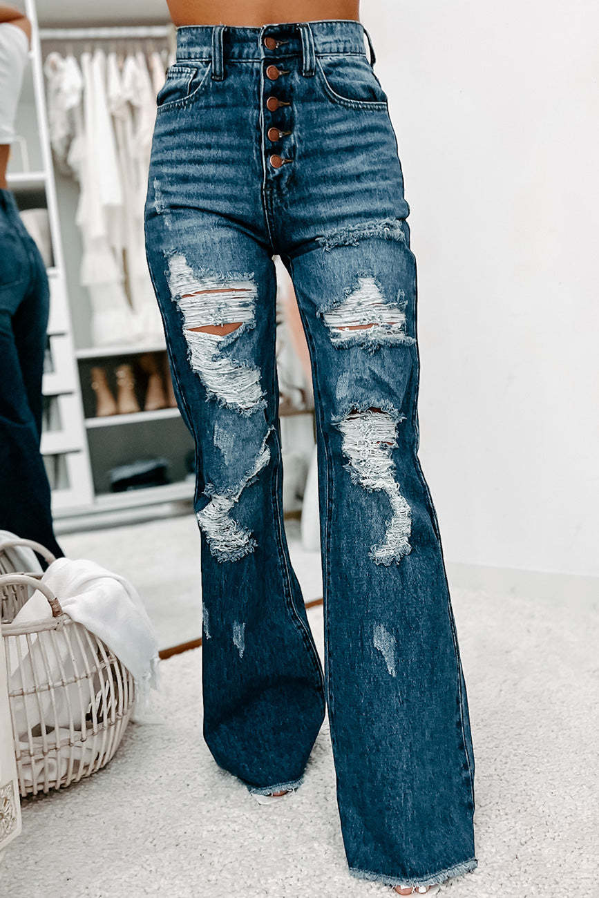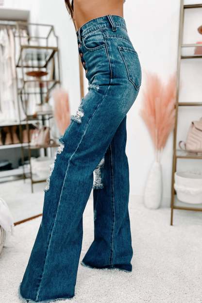 Baxter High Rise Distressed Wide Leg Jeans (Medium)