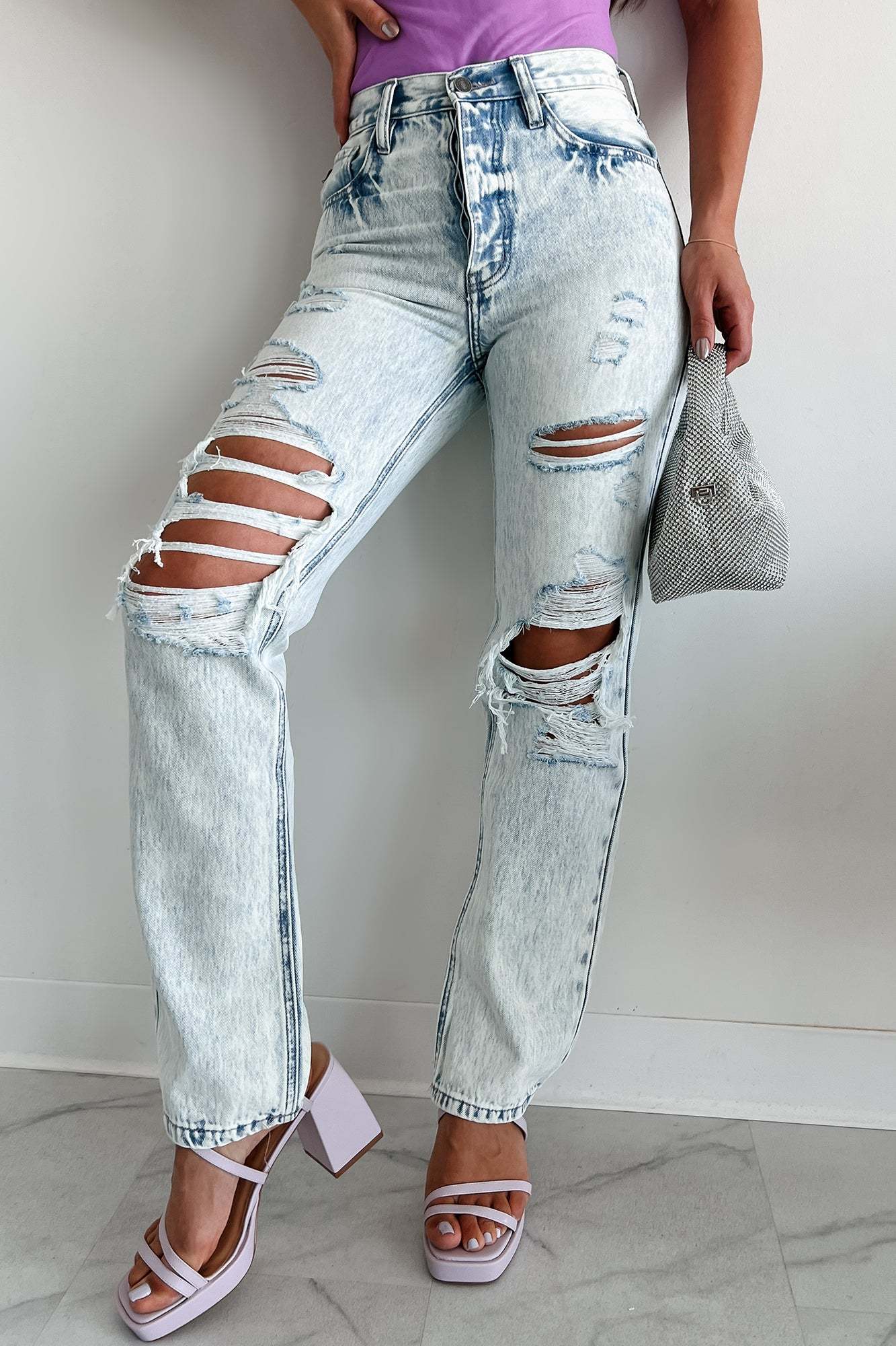 Bennett High Rise Distressed 90's Boyfriend Kancan Jeans (Light Acid)