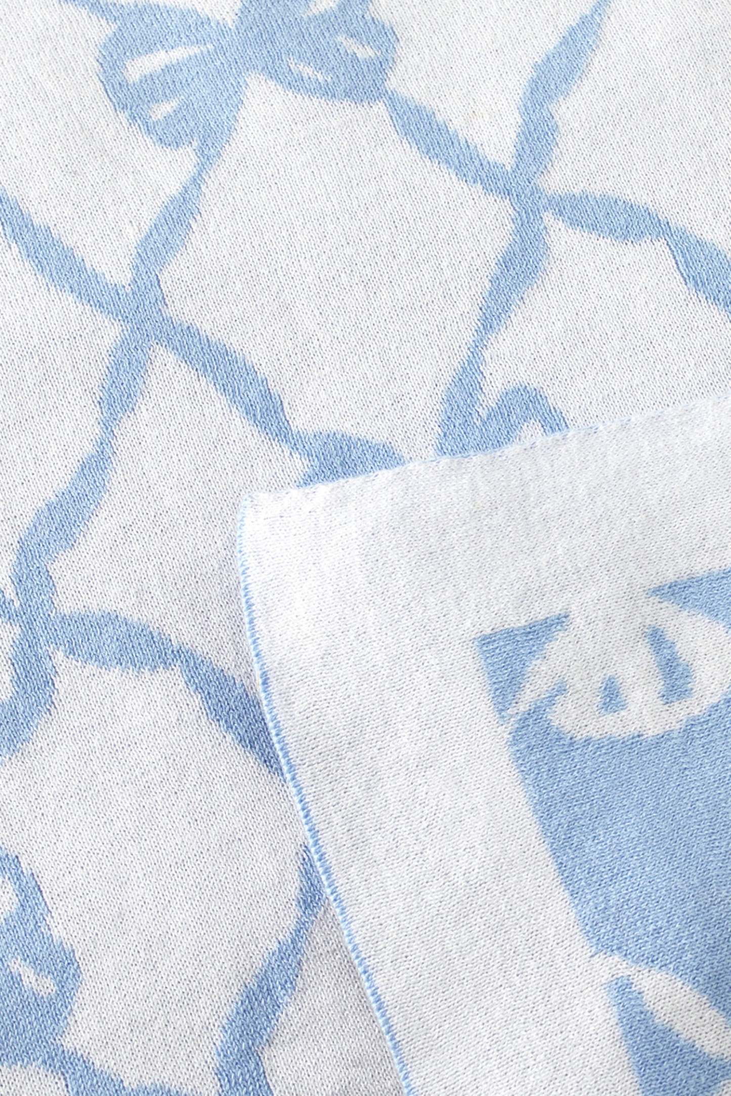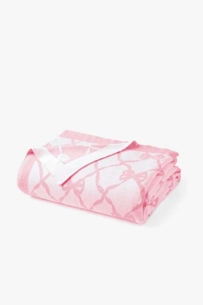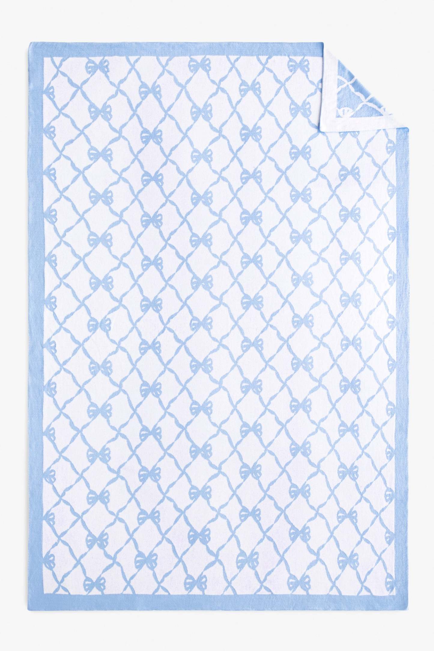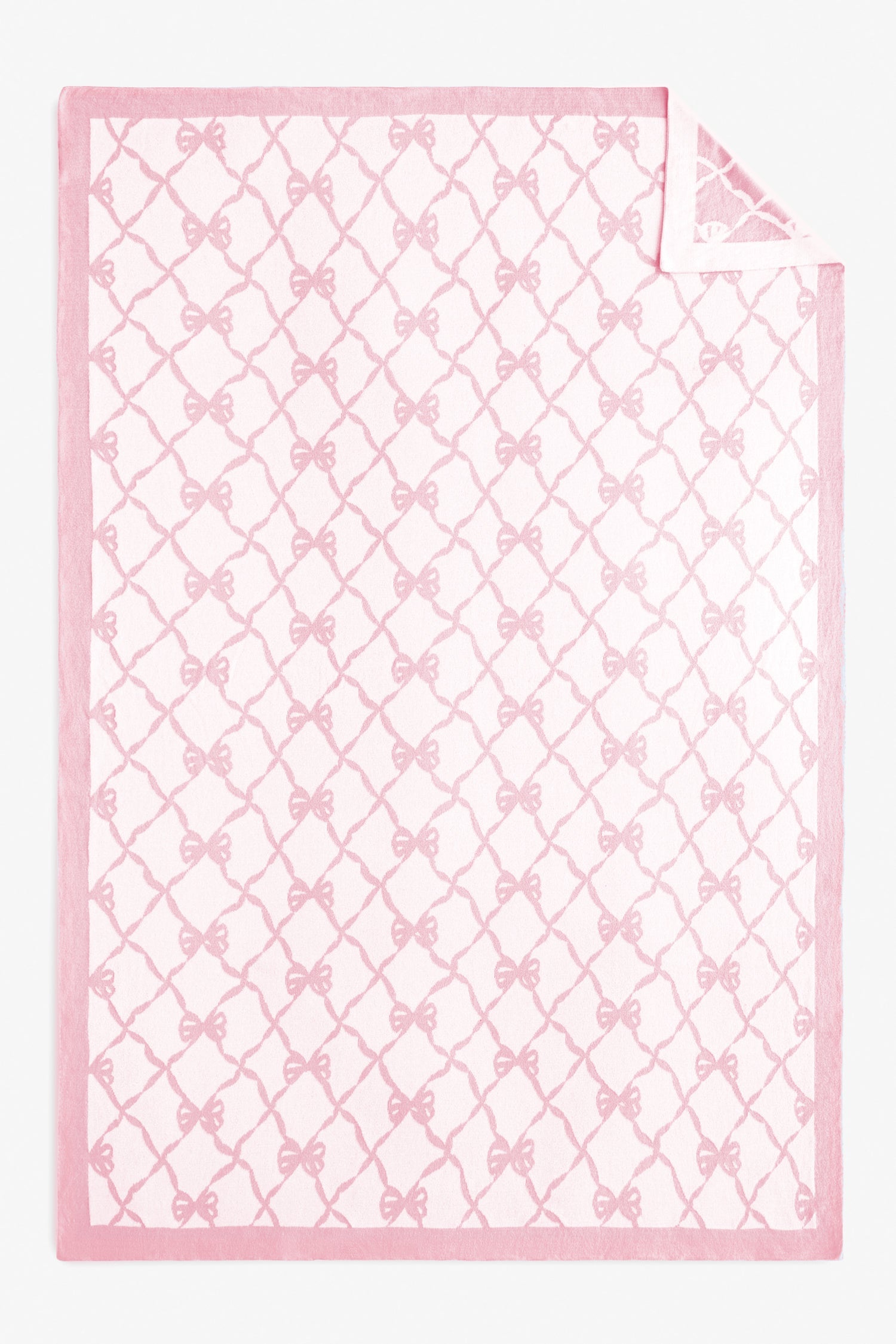 Cozy up with our cotton Bow Throw Blanket which is reversible and features our favorite bow print. Shown here in Pastel Pink.