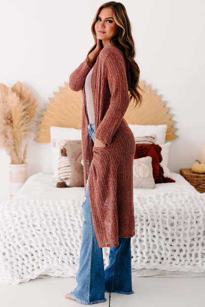 By Any Means Necessary Hooded Duster Cardigan (Red Bean)
