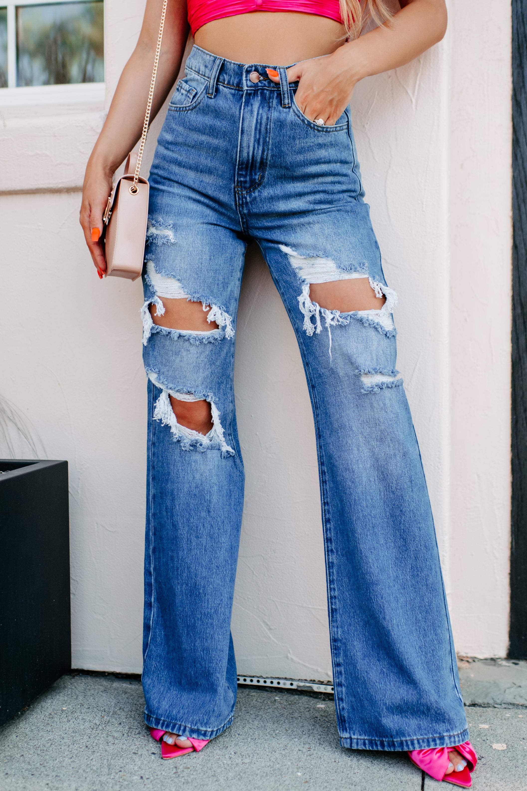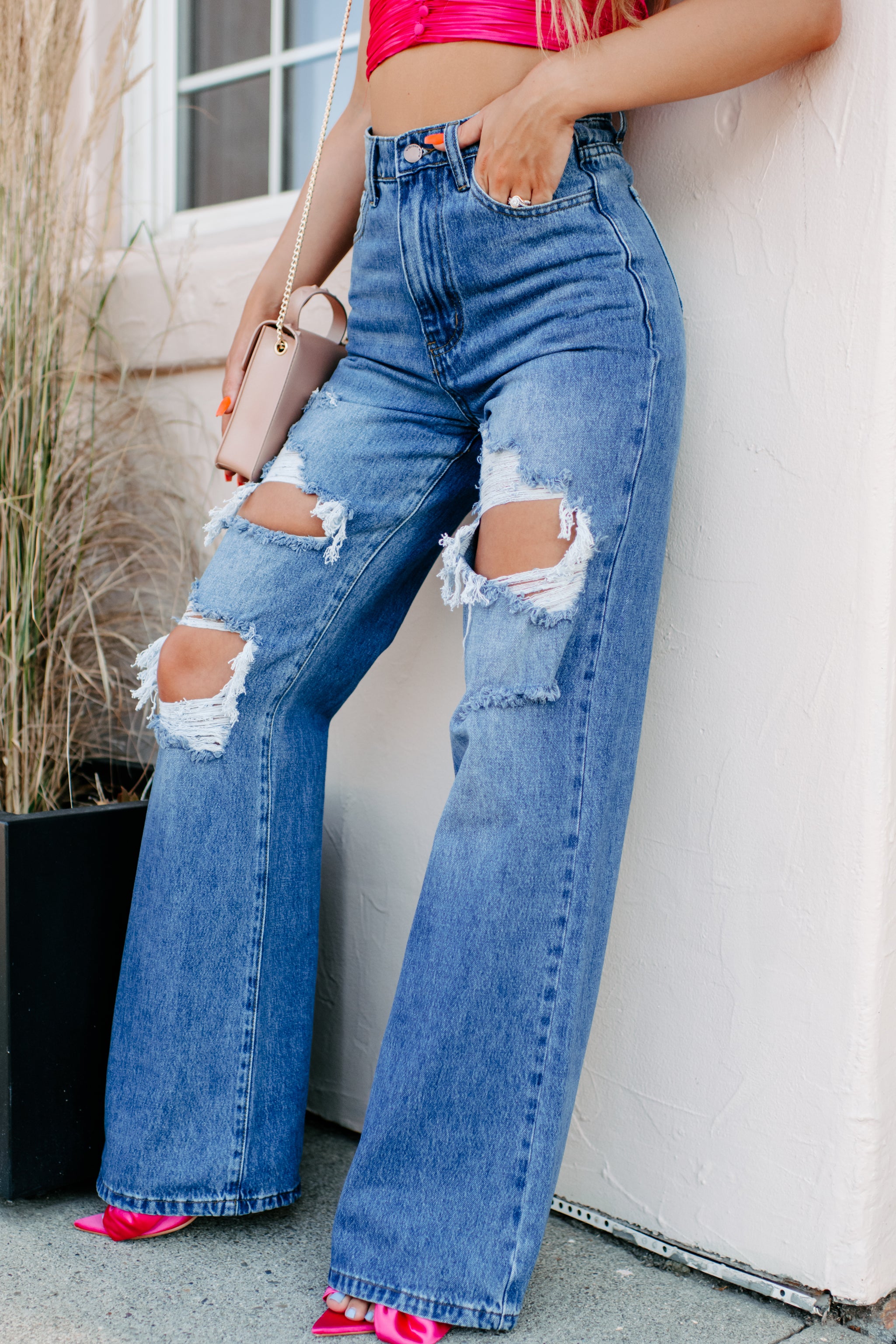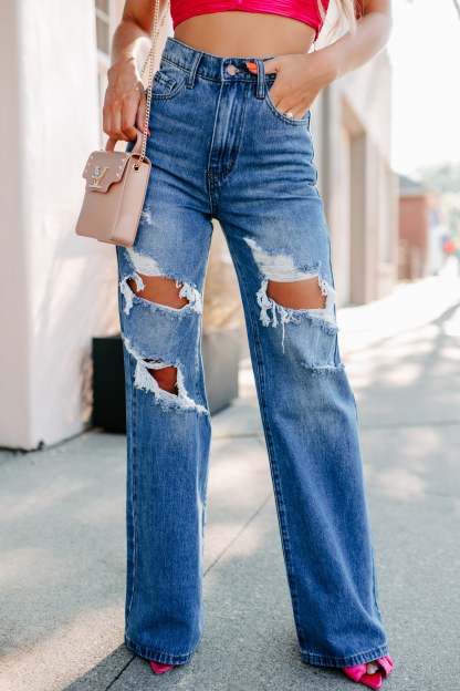 Caden High Rise Distressed Wide Leg Jean (Medium)