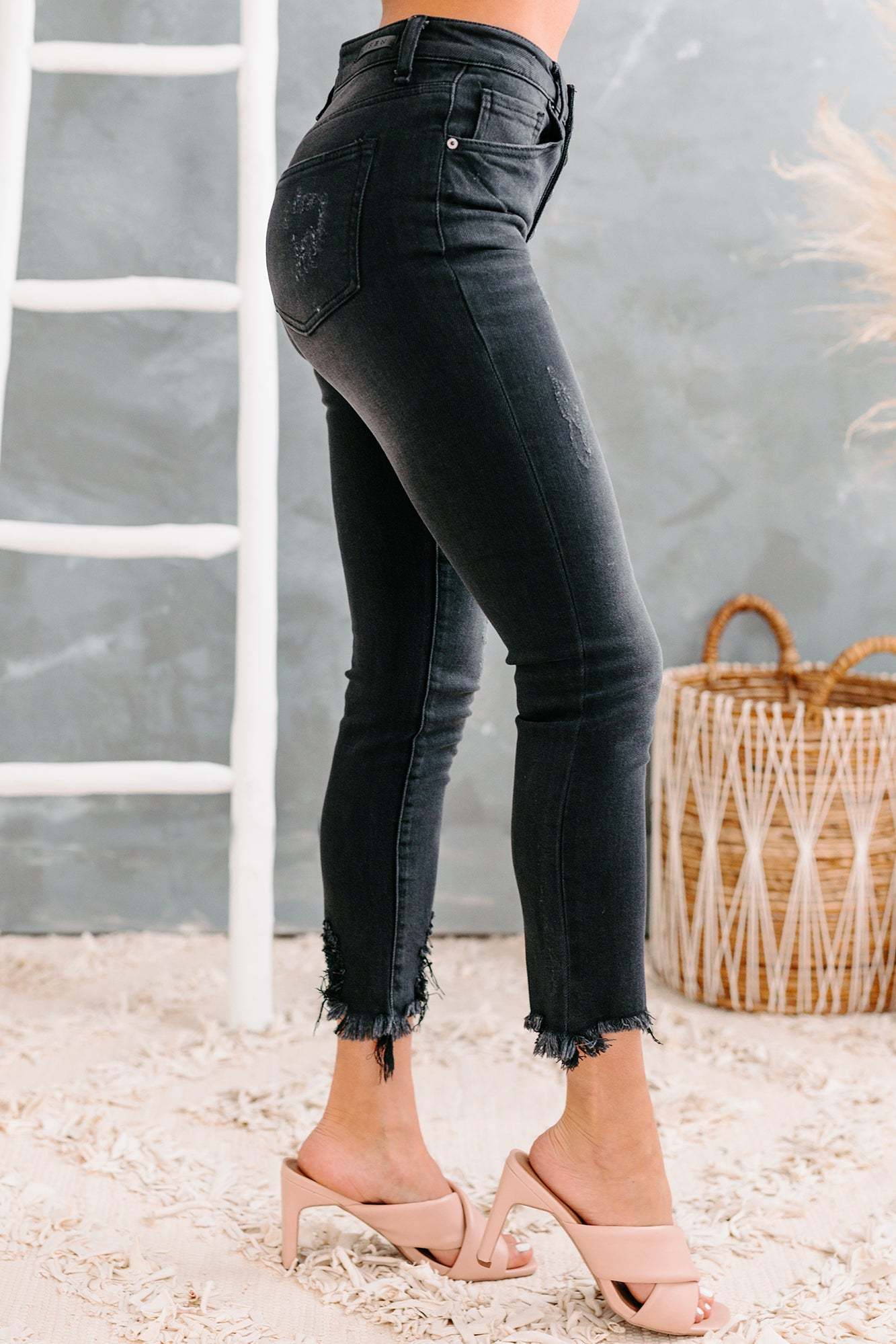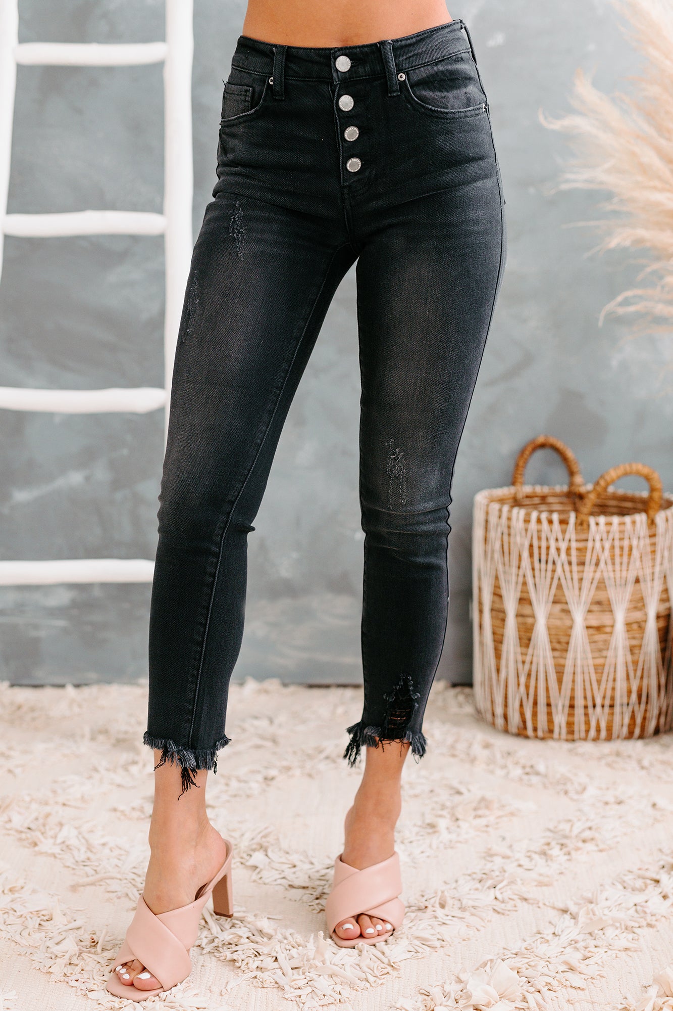 These Black. Mid-Rise. Button-Fly Raw Hem Skinny Jeans Will Be Your Obsession!