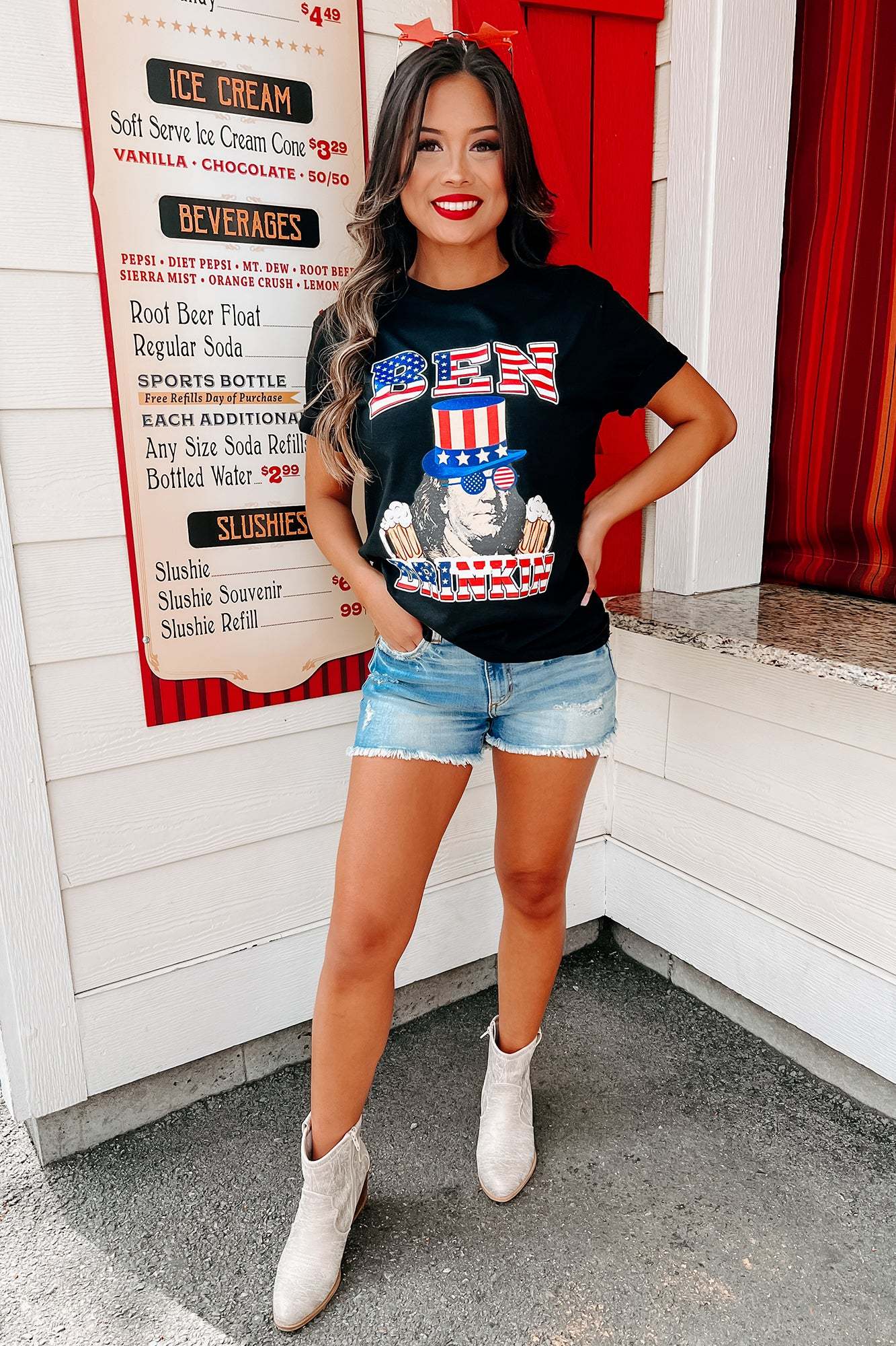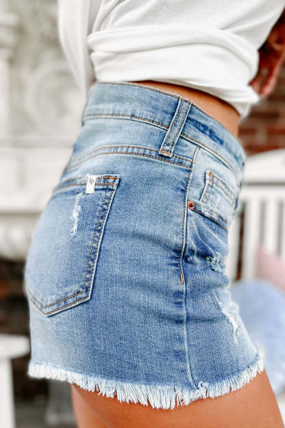 These Denim Shorts Are Lightly Distressed With A Frayed Hem Perfect For A Casual Look!