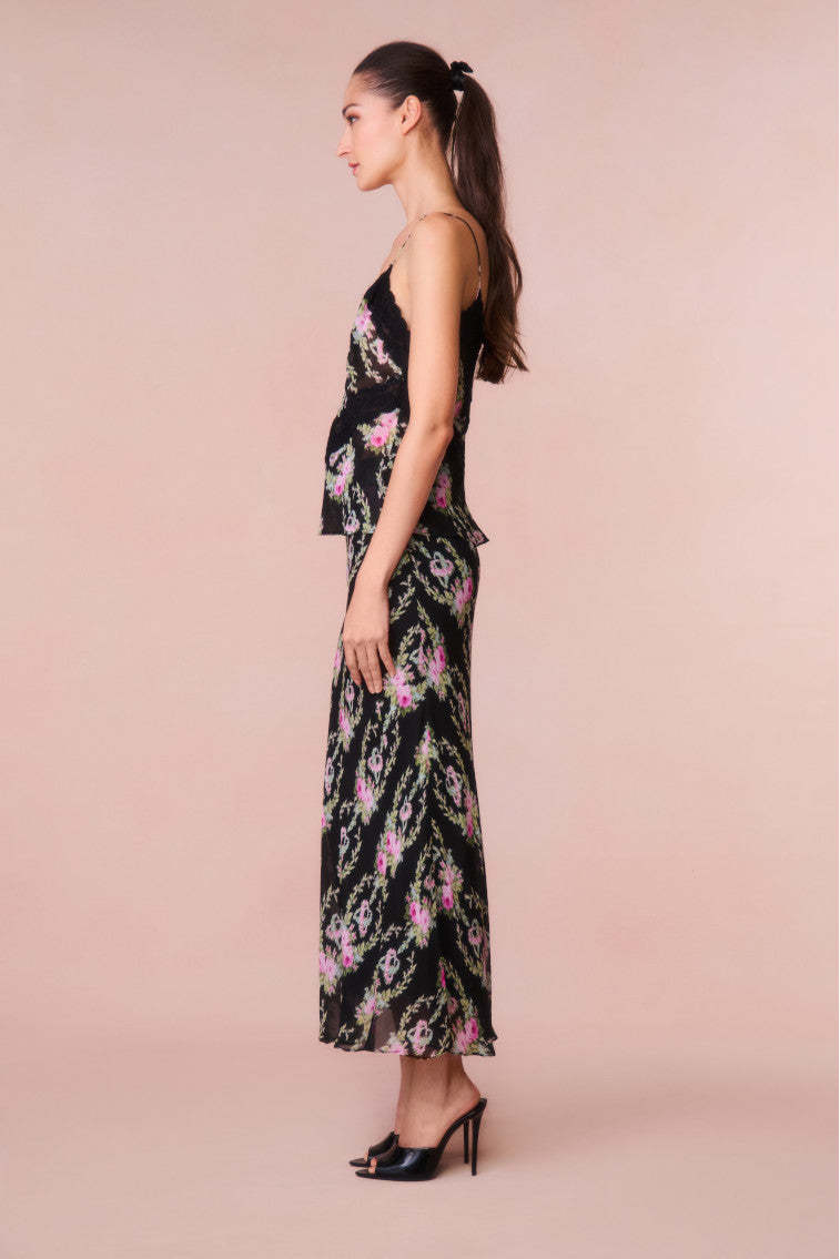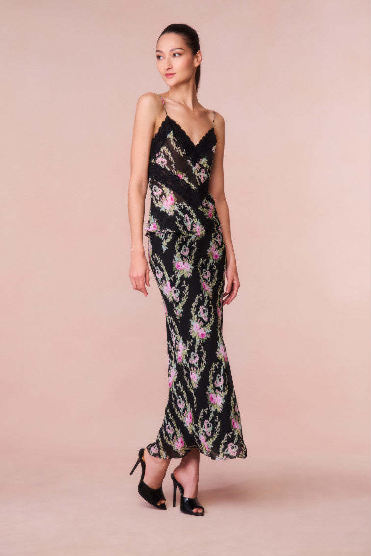 Our signature slip. the Castle Skirt. returns for the season. This feminine slip is designed from a printed viscose georgette fabric featuring our print of the season – an original. vintage-inspired OhMollys floral print. This OhMollys essential is a bias-cut midi skirt with a pencil slip shape. offering a flattering silhouette. The skirt features a lightly elasticated waist. ensuring a comfortable and slinky feel while still providing ease of wear. Effortless to pull on. the Castle Skirt combines comfort with style. Pair with the Brimsley Top for a full set.