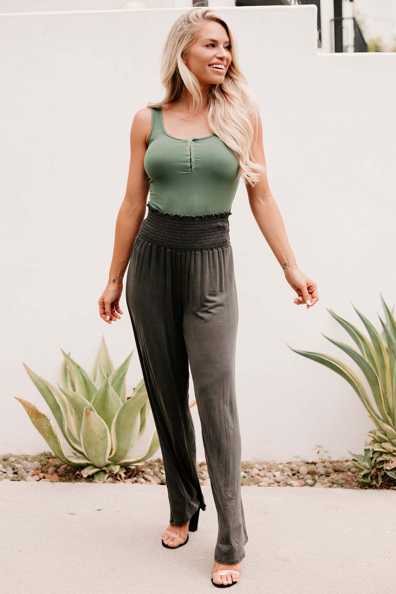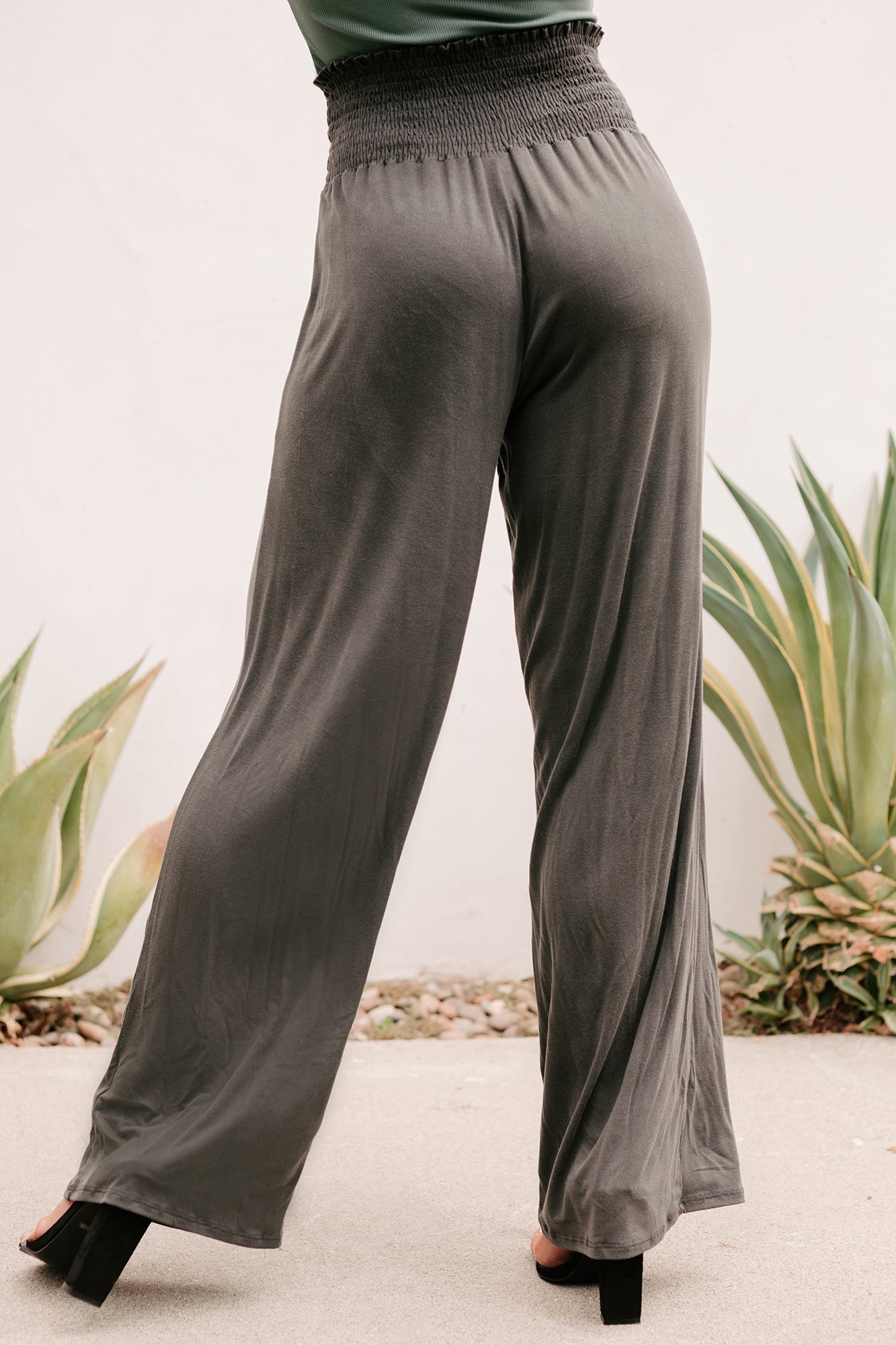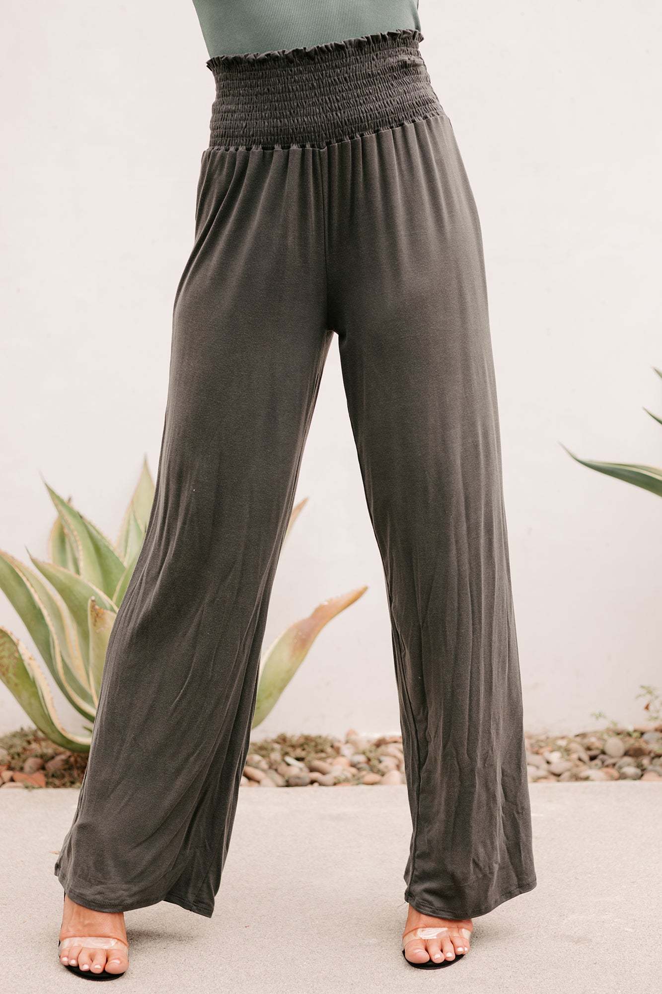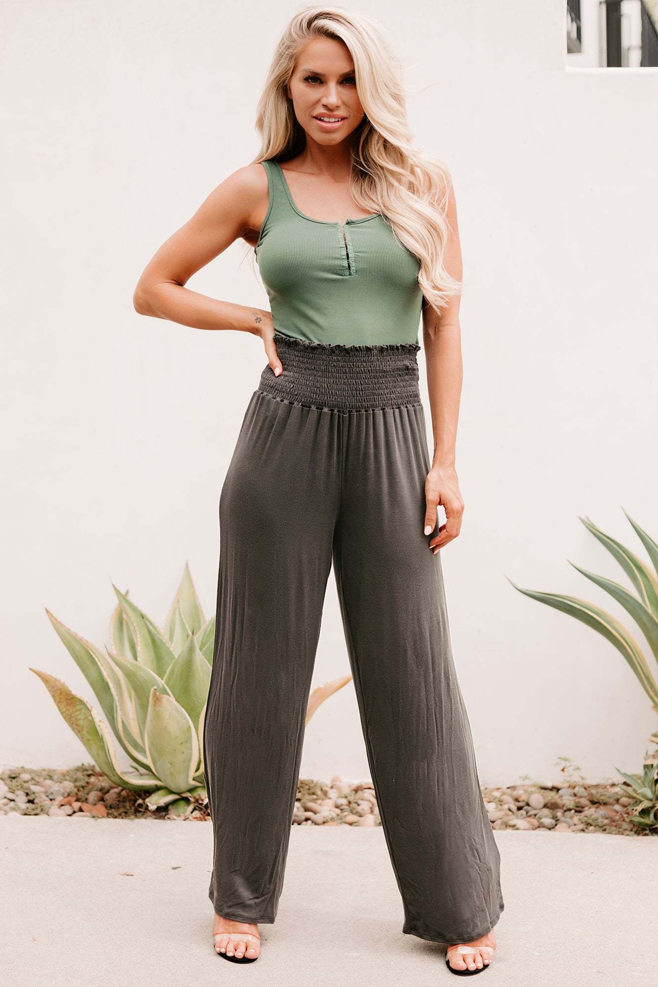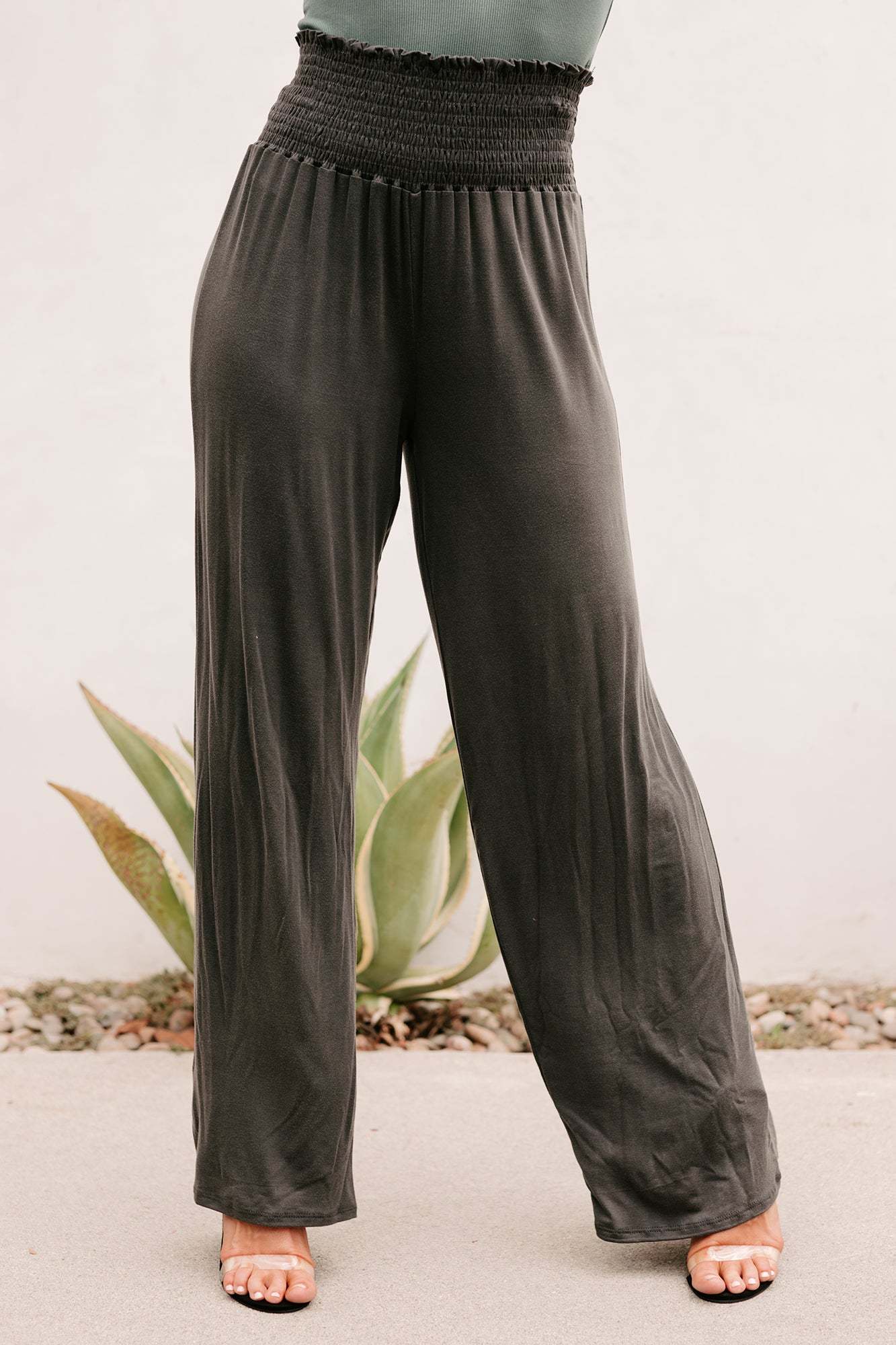 You'll Look Cute But Feel Comfy In These Black. High Rise. Smocked Waist. Wide Leg Pants!