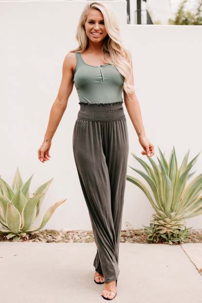 Catamaran Cruisin' Smocked Wide Leg Pants (Black)