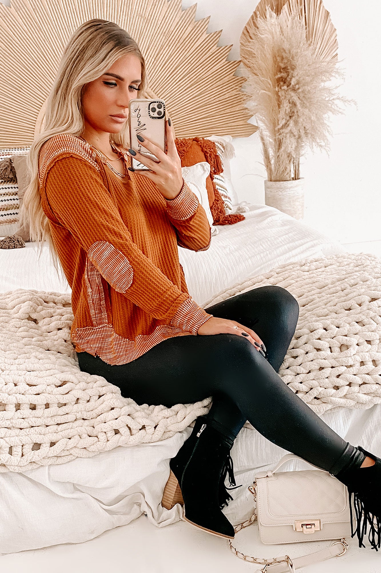 Cool Mornings Two-Tone Thermal Top (Brick)