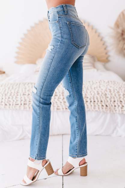 These Straight Leg. Medium Light. High Rise Jeans Are Going To Look So Cute With All Your Boots And Booties!