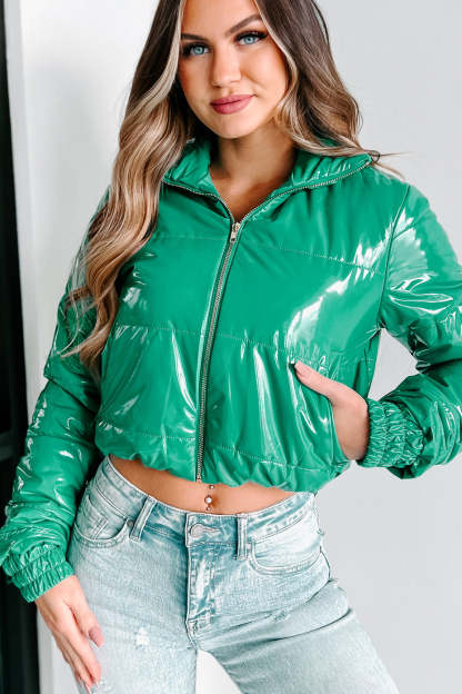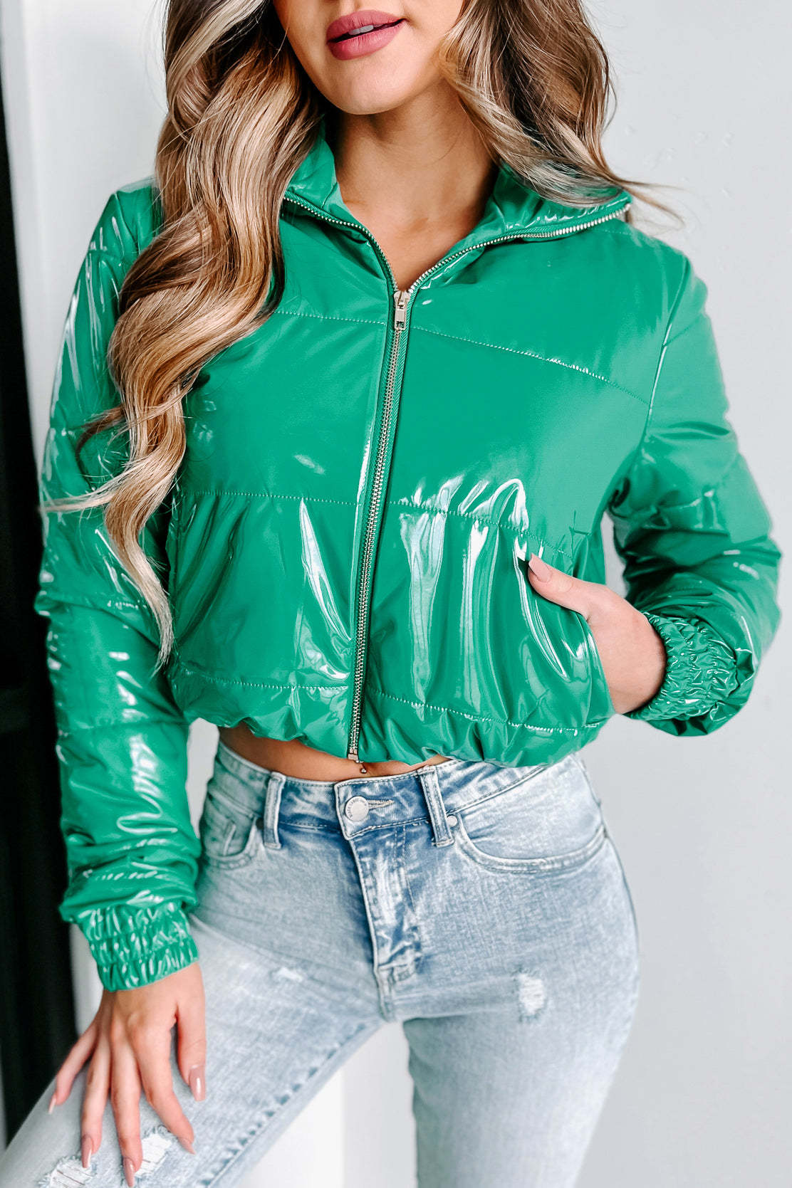 Big City Streets Patent Leather Puffer Jacket (Kelly Green)