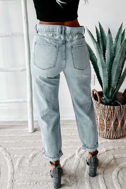 These Light Wash. Straight Leg Jeans Have A Slightly Slouchy Fit & A Unique. Drawstring Waist Feature You'll Think Is So Cool!