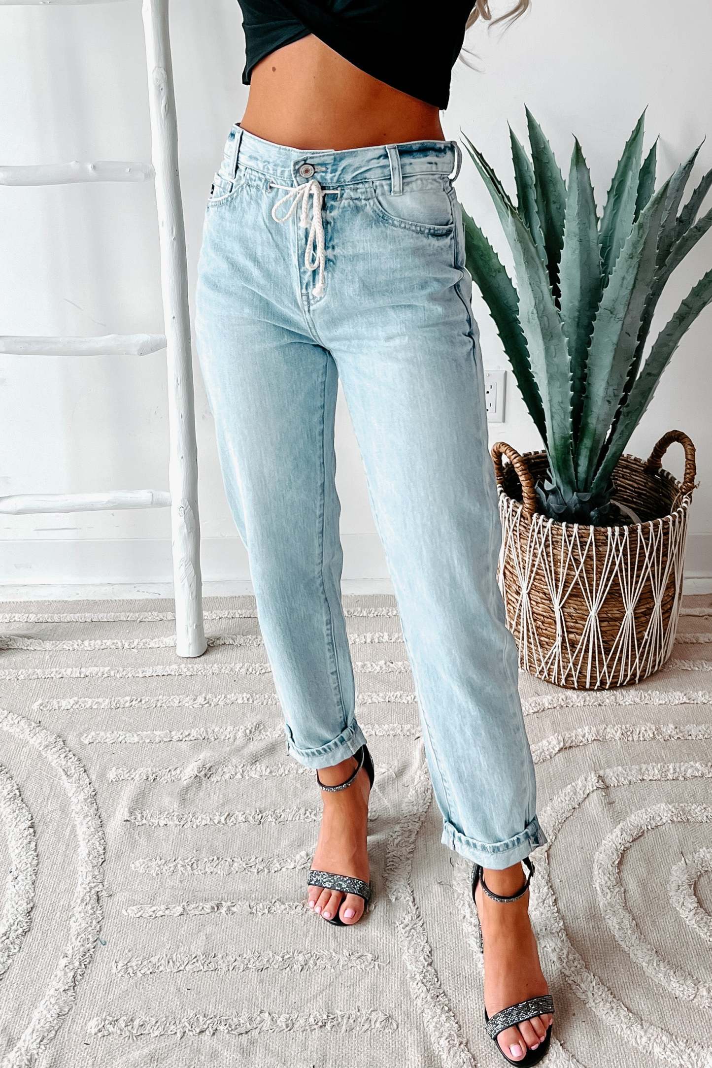 Drawing Conclusions High Rise Straight Leg Drawstring Waist Kancan Jeans (Light)
