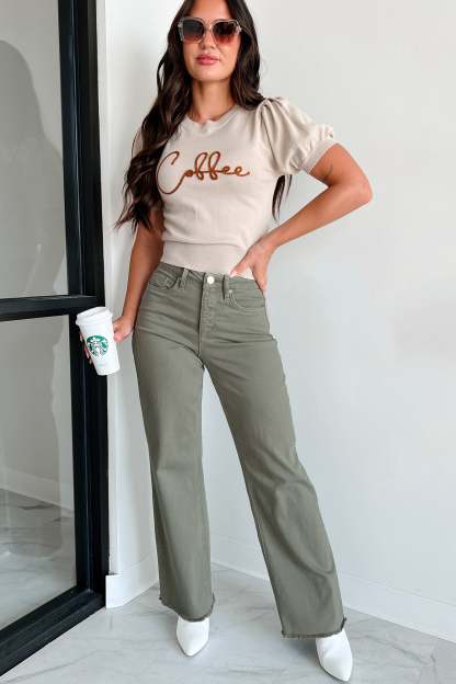 Drink Of Choice 'Coffee' Embroidered Sweater Top (Sand/Brown)