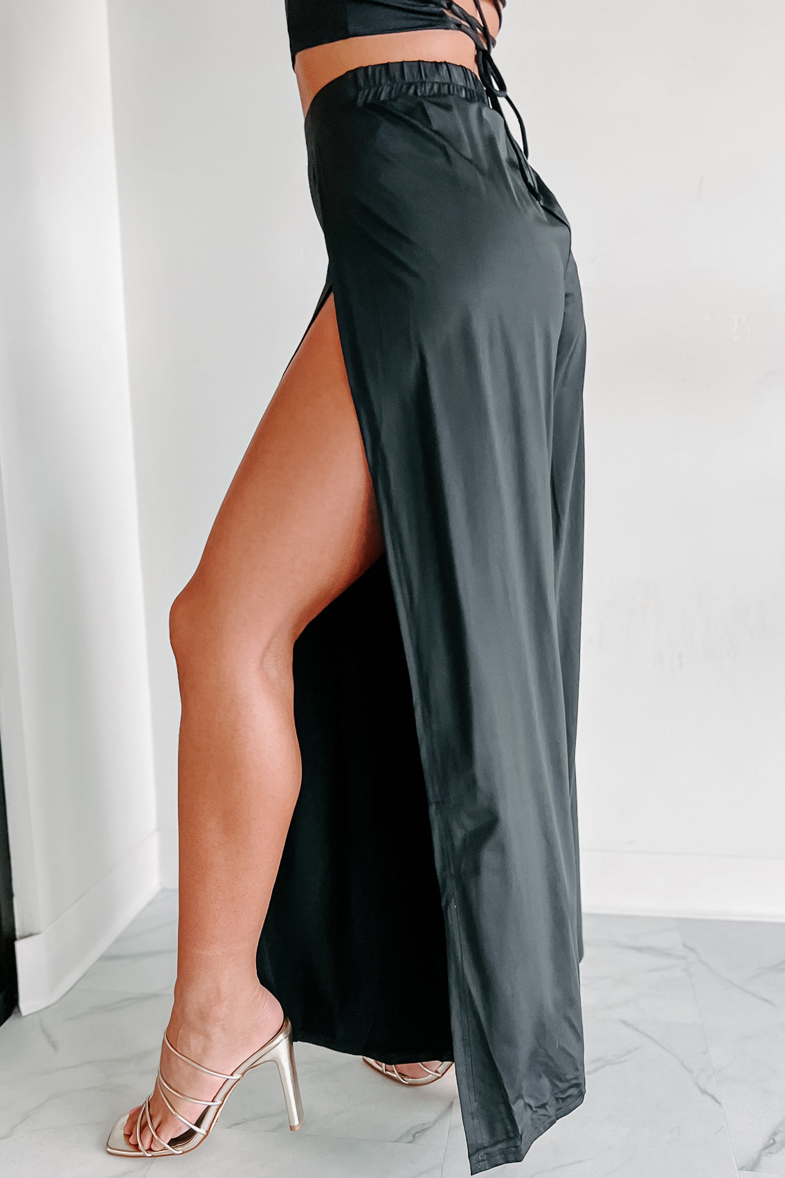 Driving To Malibu Crop Top & Pant Two-Piece Set (Black)
