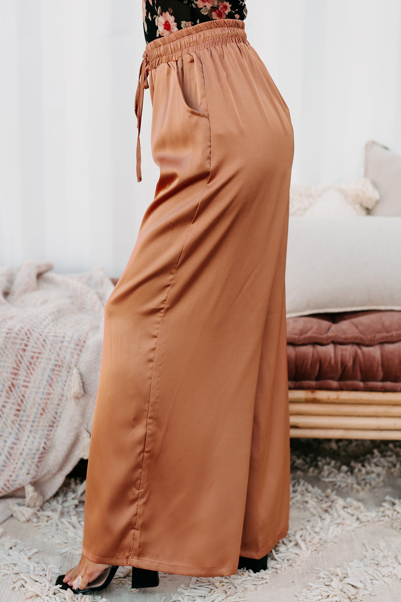 Eisele Wide Leg Satin Pants (Light Cinnamon)
