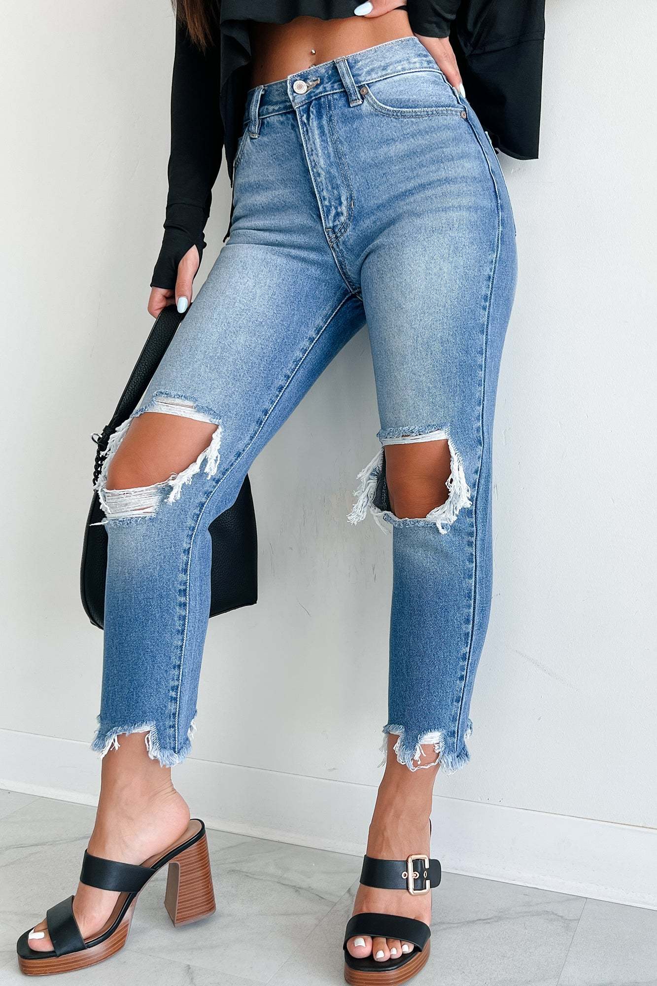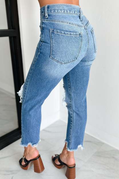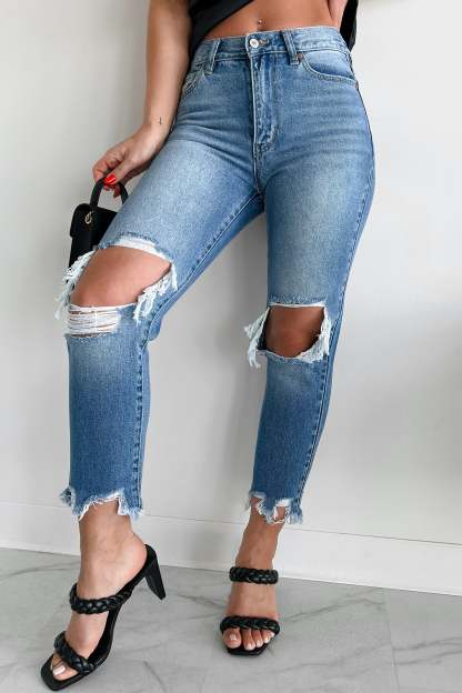 Eliana High Rise Distressed Kancan Mom Jeans (Medium)