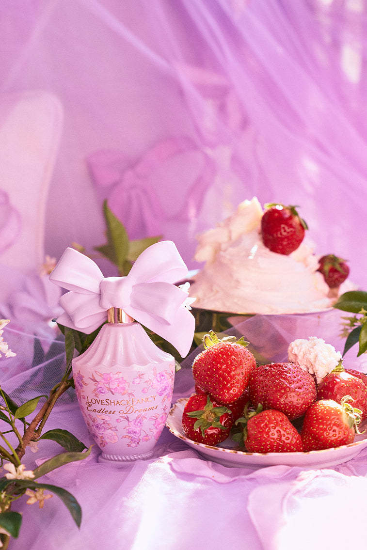Introducing Endless Dreams. Head in the clouds. feet on the ground. Endless Dreams begin with strawberries and raspberries so sweet you can almost taste them. Jasmine and peony act as a fragrant lace. apparent yet transparent. Tahitian vanilla blends with the wild berries and lush flowers for a delicious and enveloping treat. Created with love and a fanciful. sweet touch by Gabriela Chelariu.