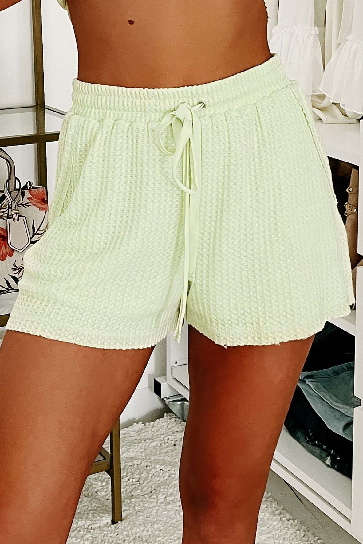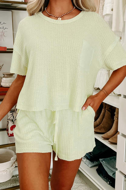 Escape The Crowd Waffle Knit Two-Piece Short Set (Light Green)