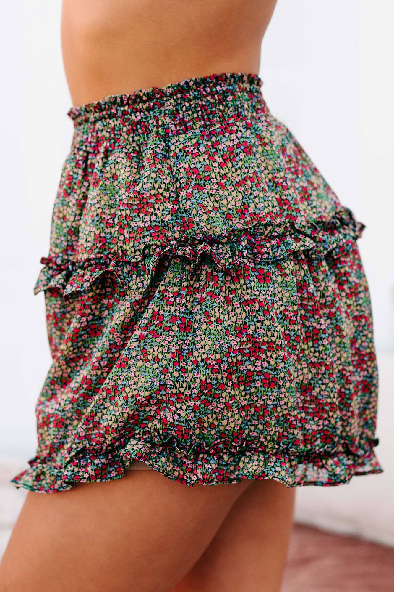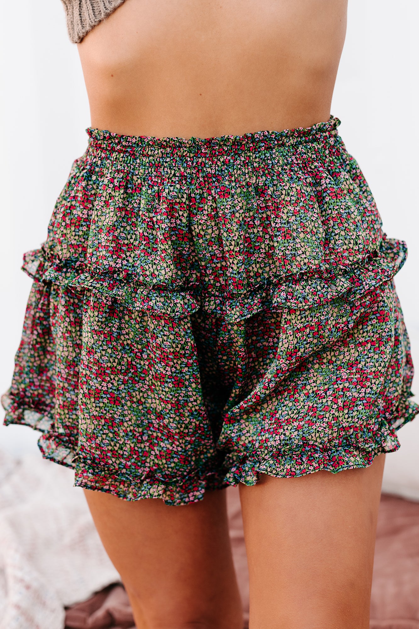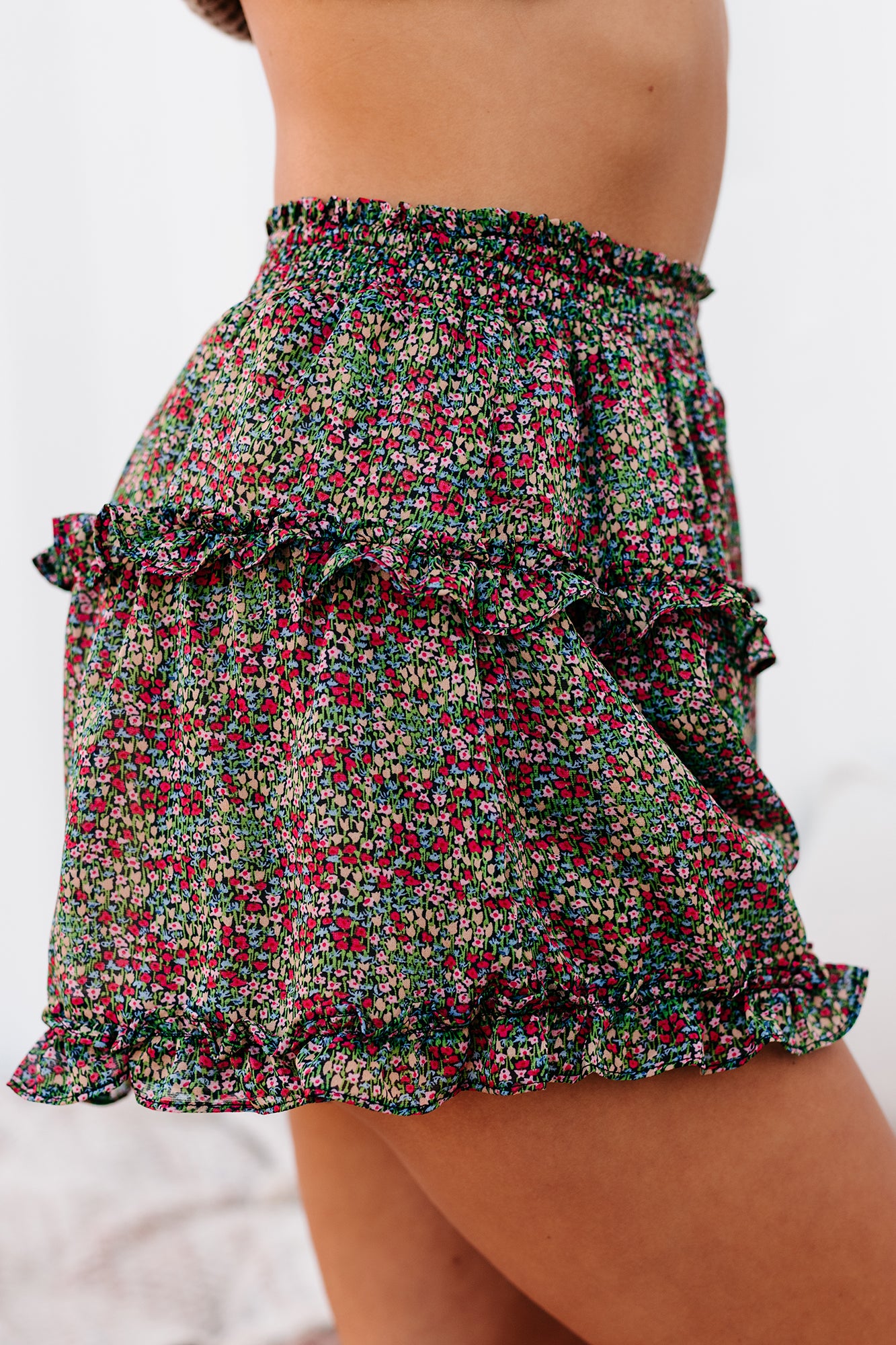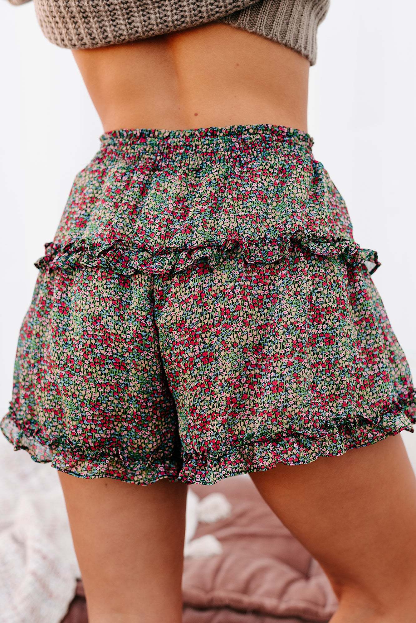 Esme Ditsy Floral Ruffled Shorts (Black Multi)