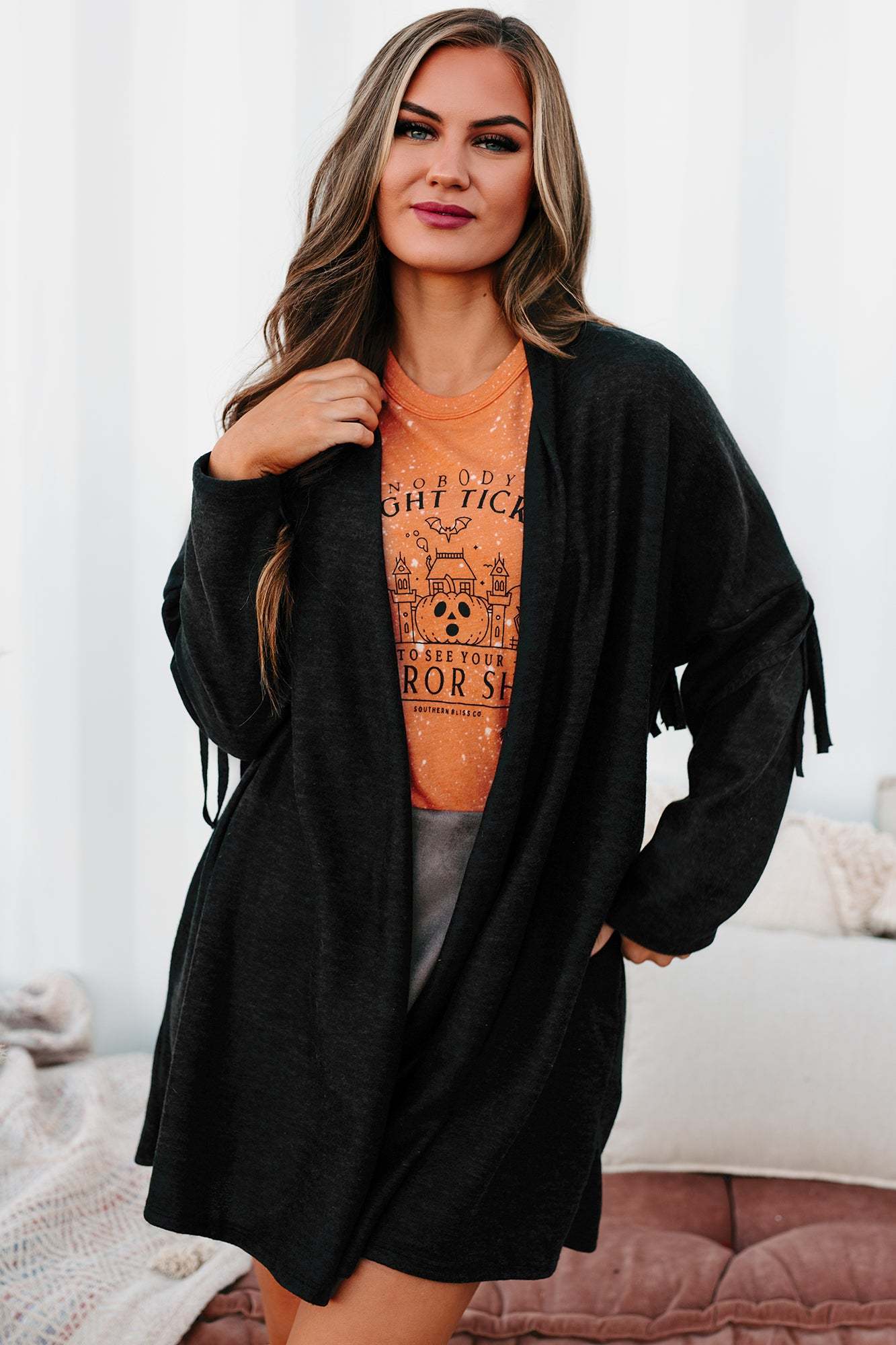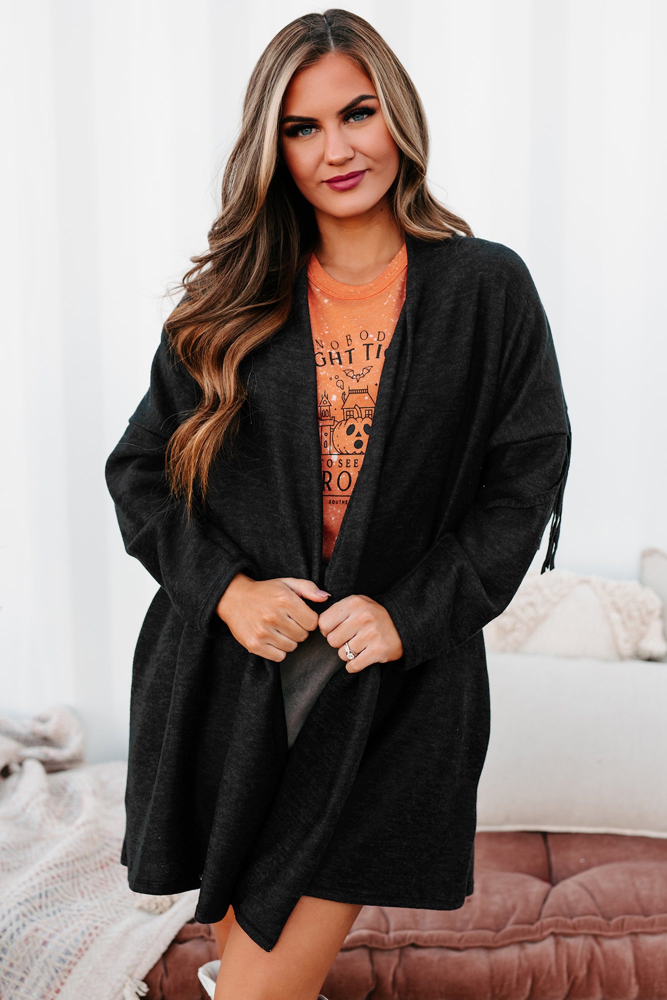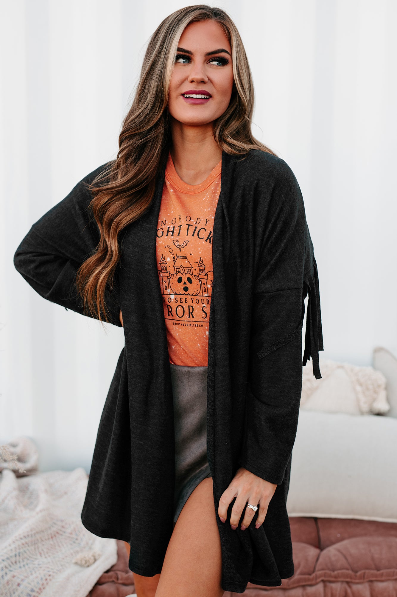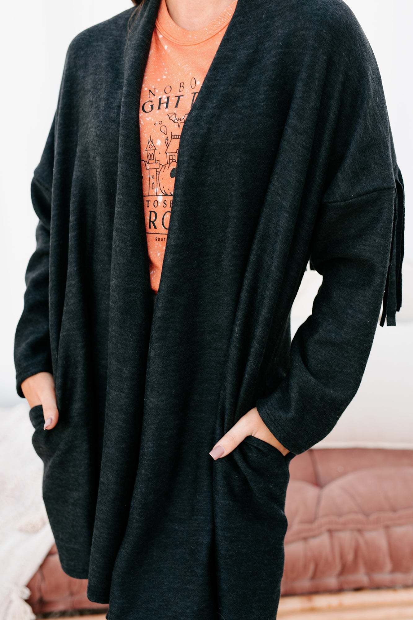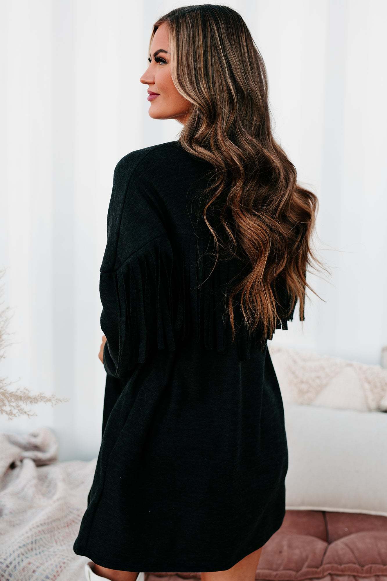 Eternal Hope Fringe Back Cardigan (Charcoal)