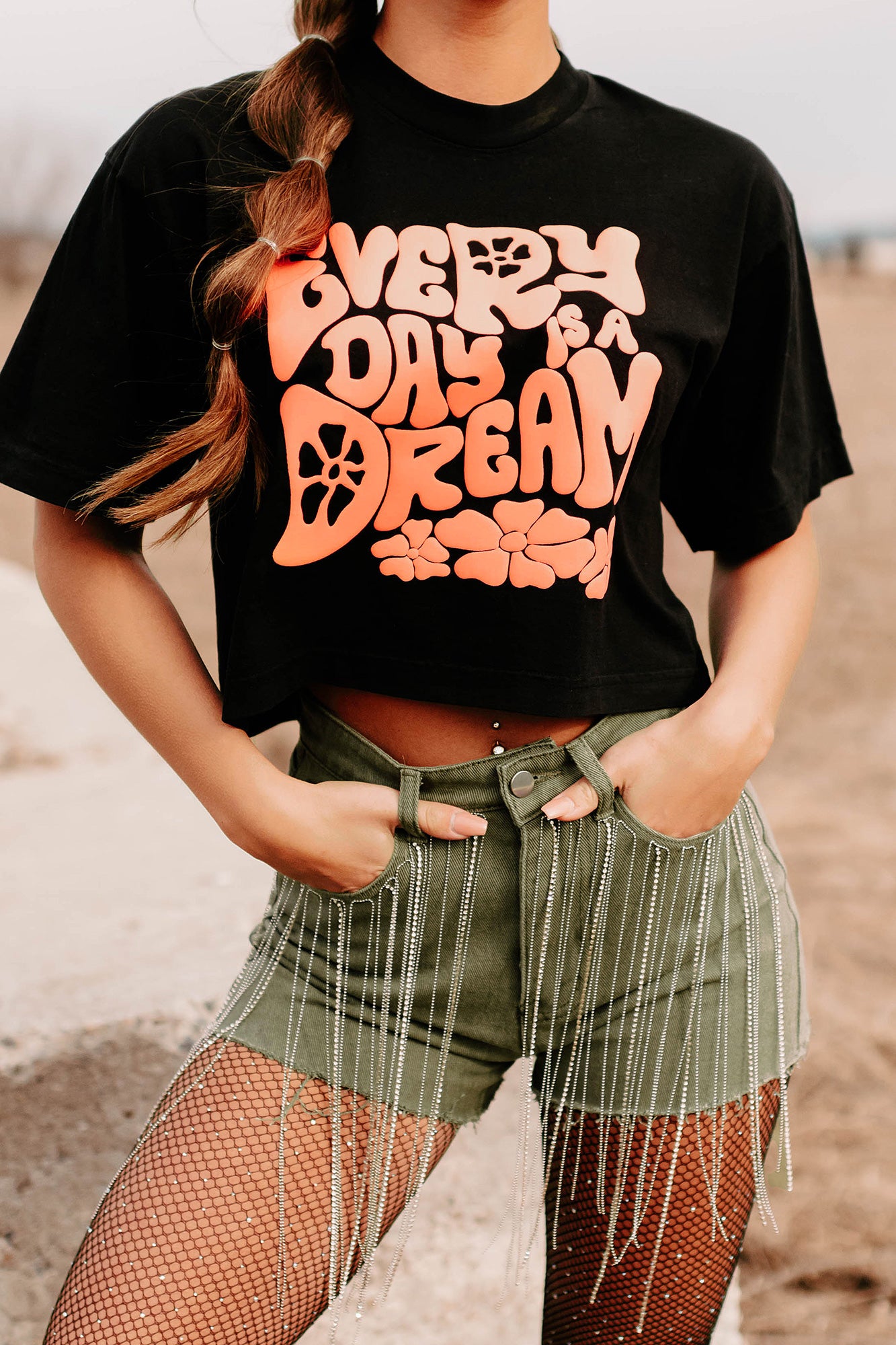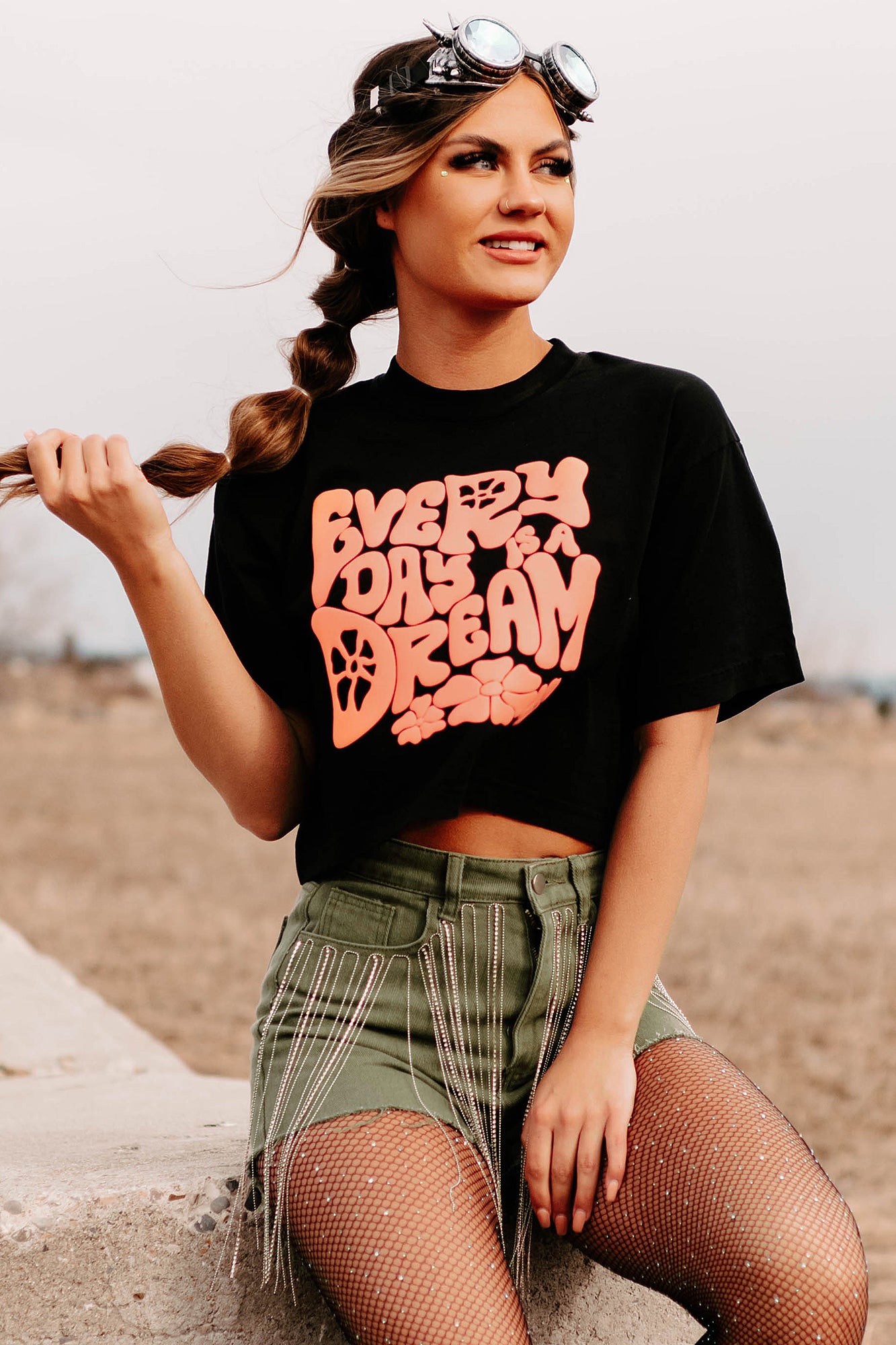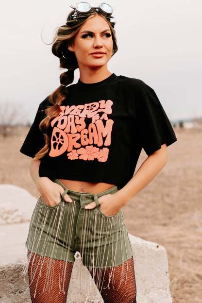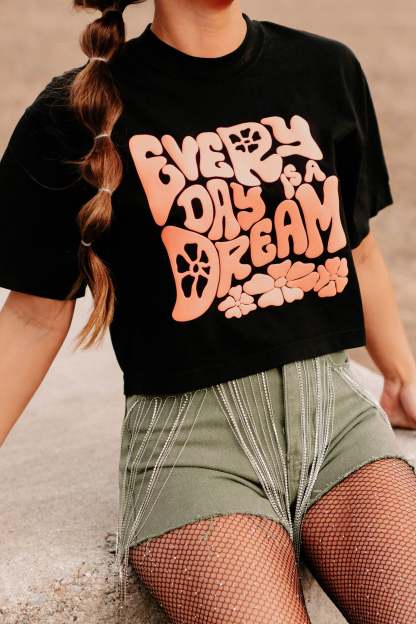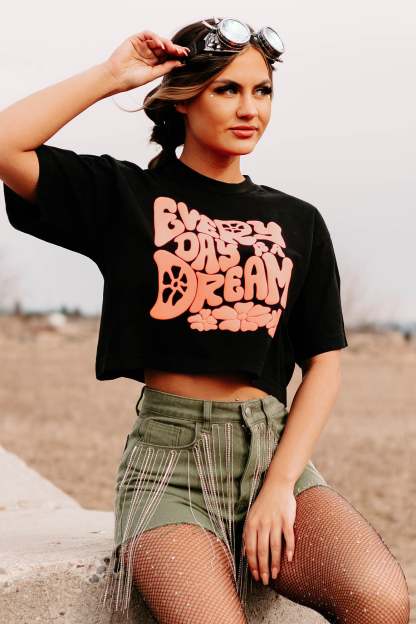Every Day Is A Dream Boxy Fit Puff Graphic Crop Tee (Black) - Print On Demand