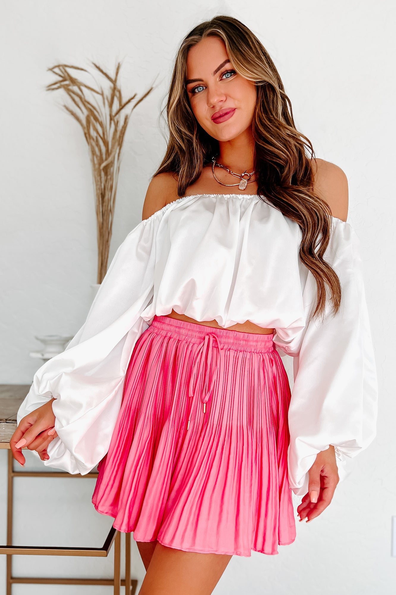Feeling Spontaneous Pleated Mini Skort (Pink)