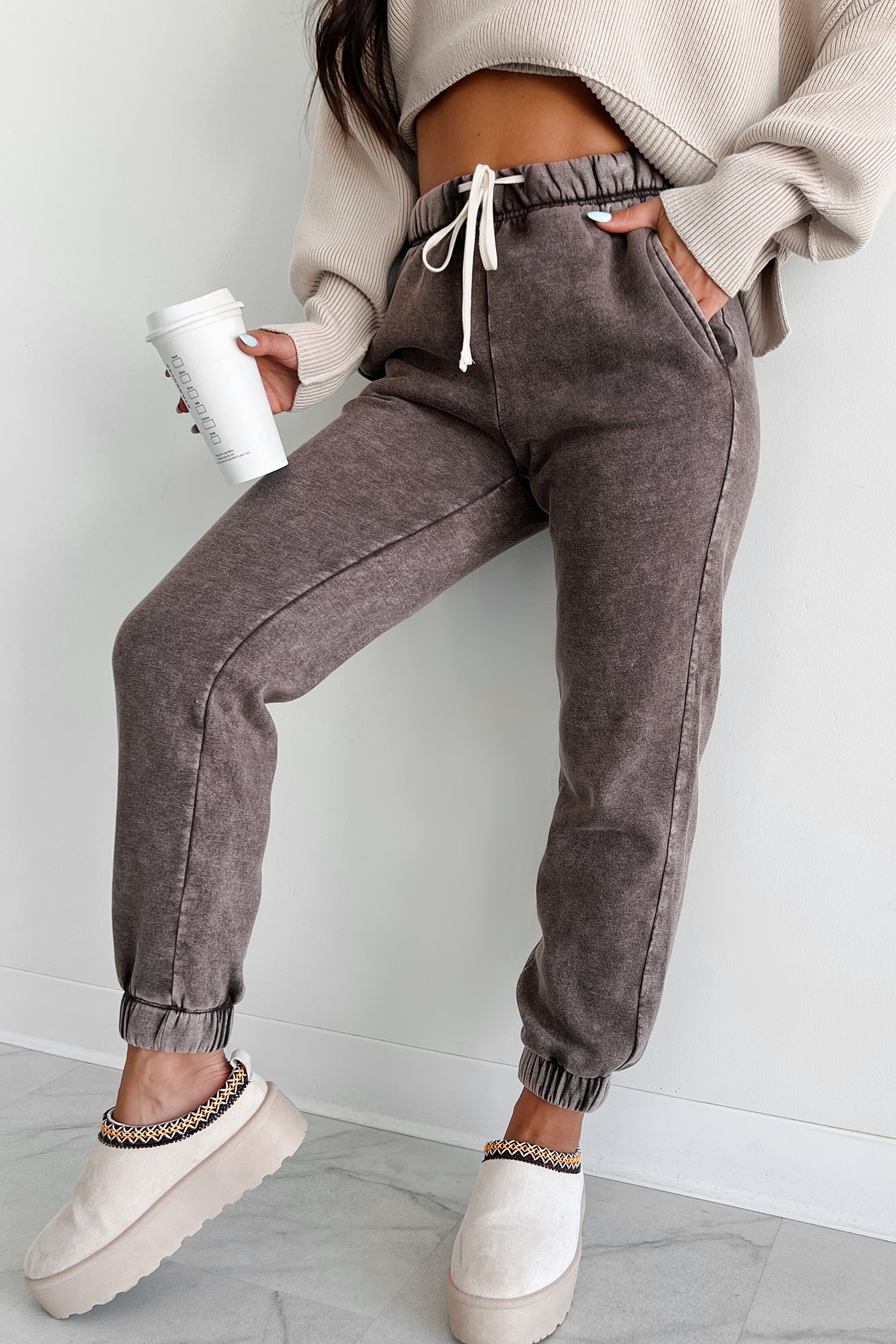 Finnegan Zenana Acid Wash Jogger Sweatpants (Brown)