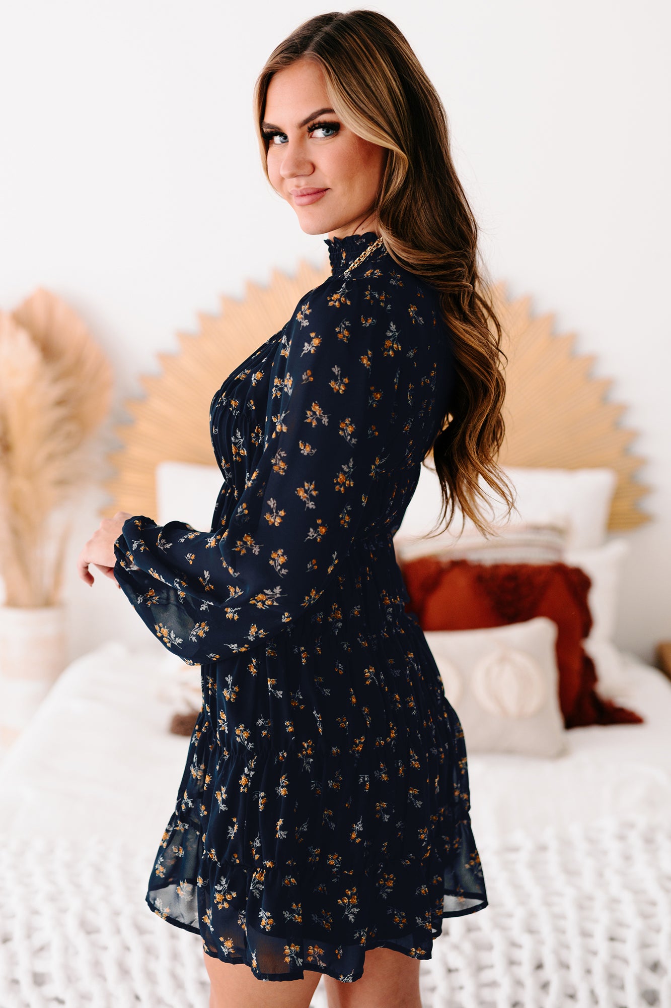 This Smocked Neck. Navy Floral Dress Is Such A Fall Staple!
