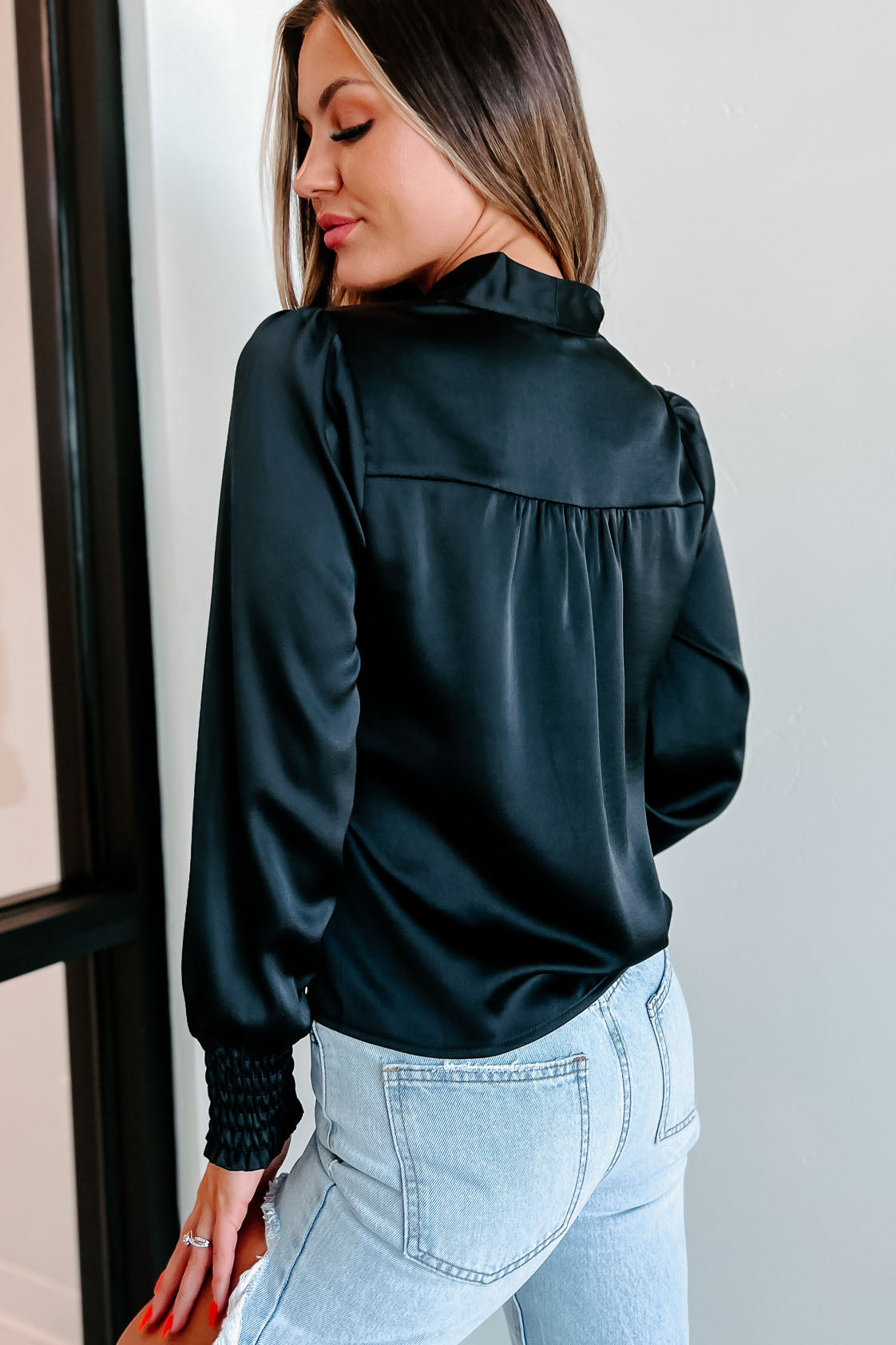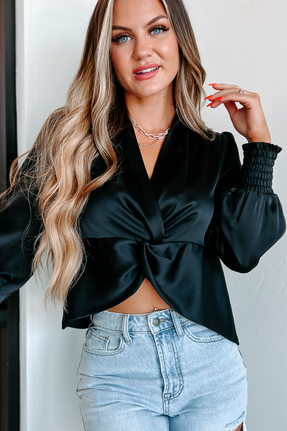 You're Gonna Love This Black. Long Sleeved. Twist-Front. Satin Top!