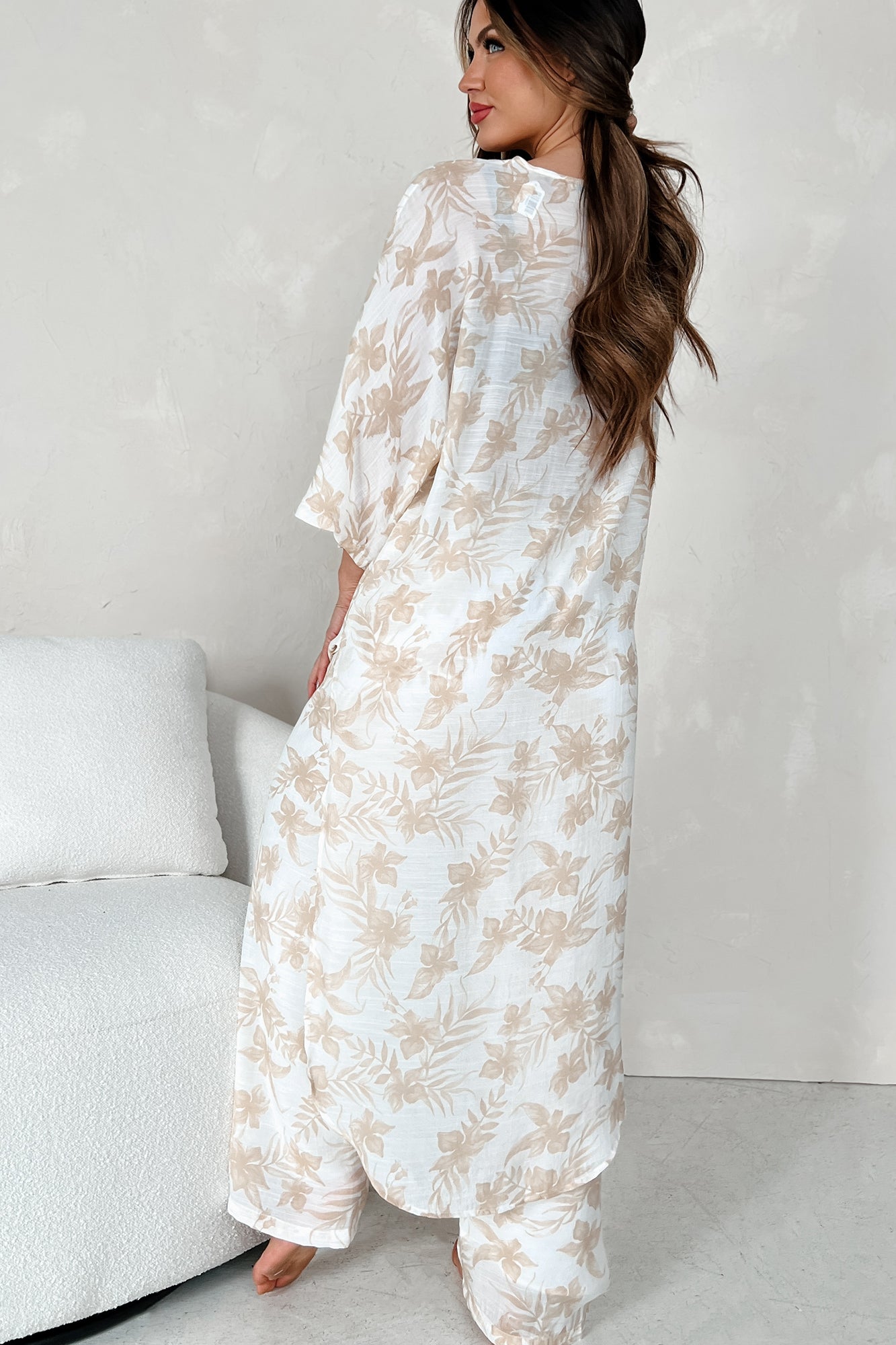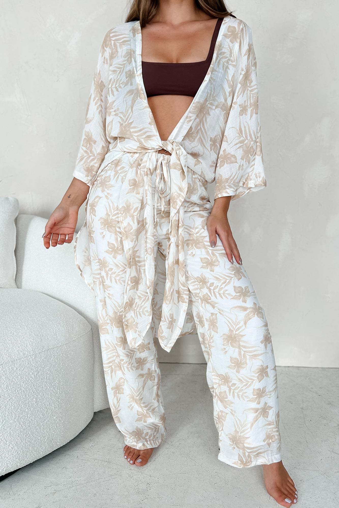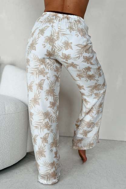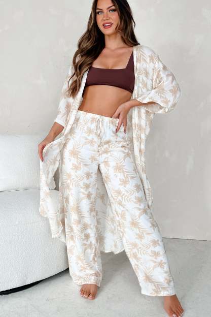 Happy In Hawaii Floral Kimono & Pant Set (Taupe)