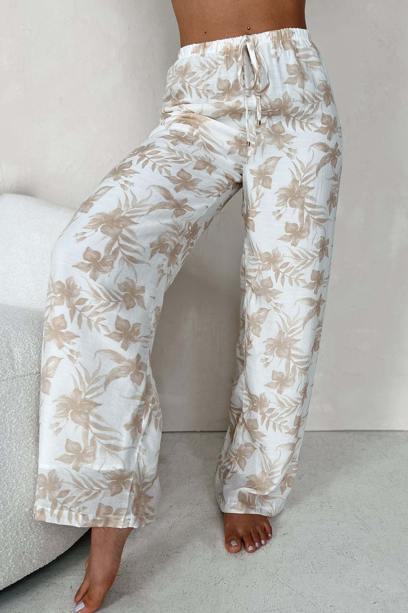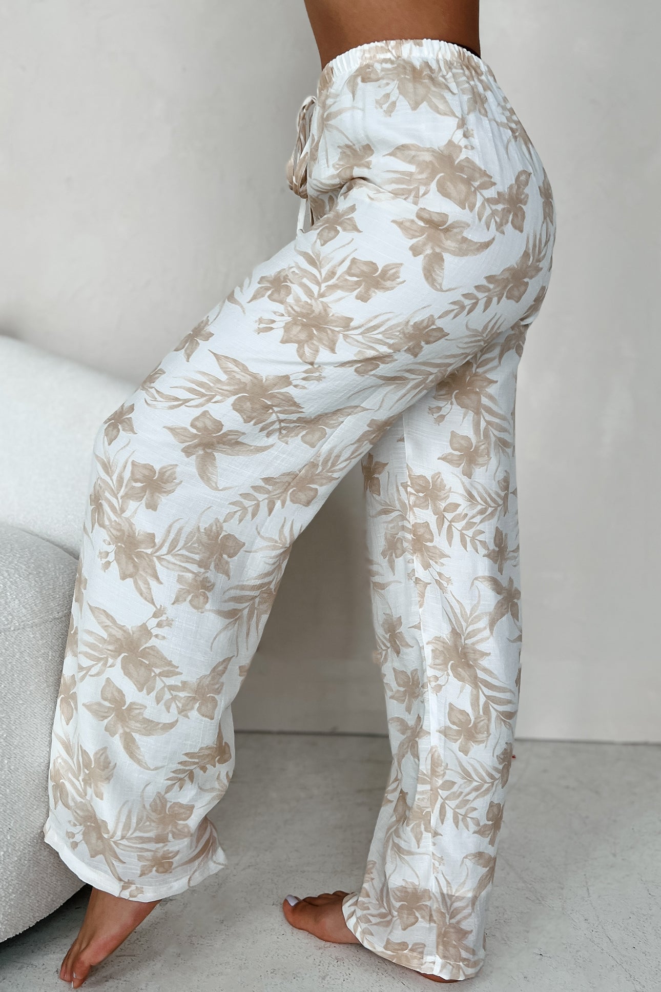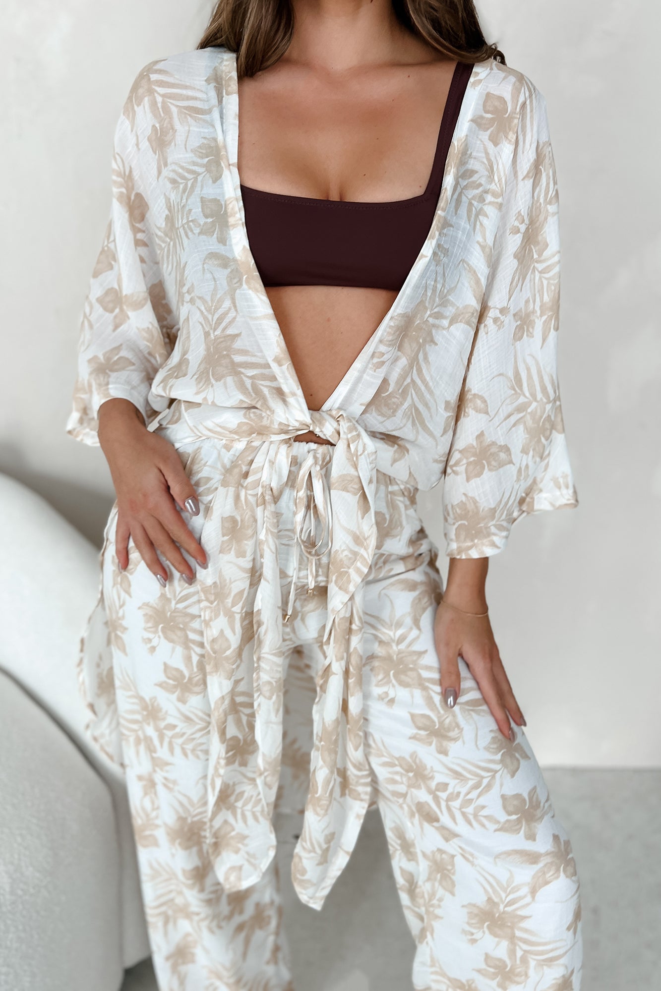 Happy In Hawaii Floral Kimono & Pant Set (Taupe)