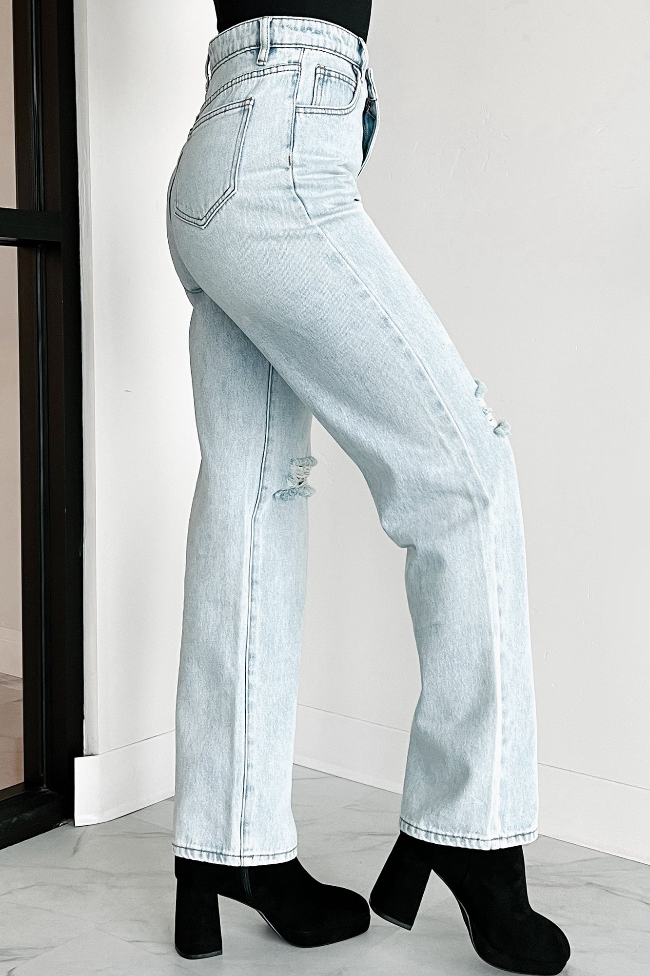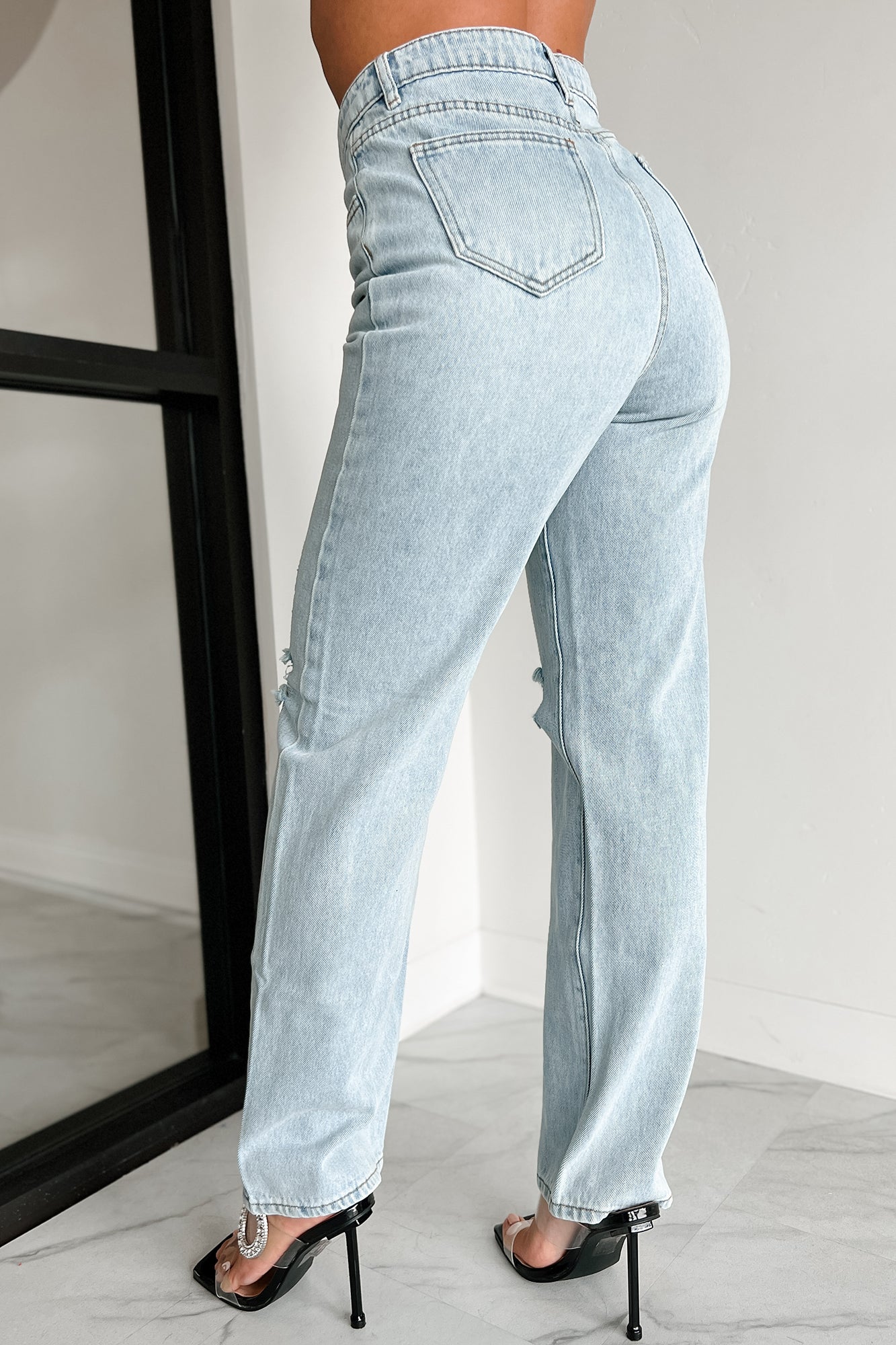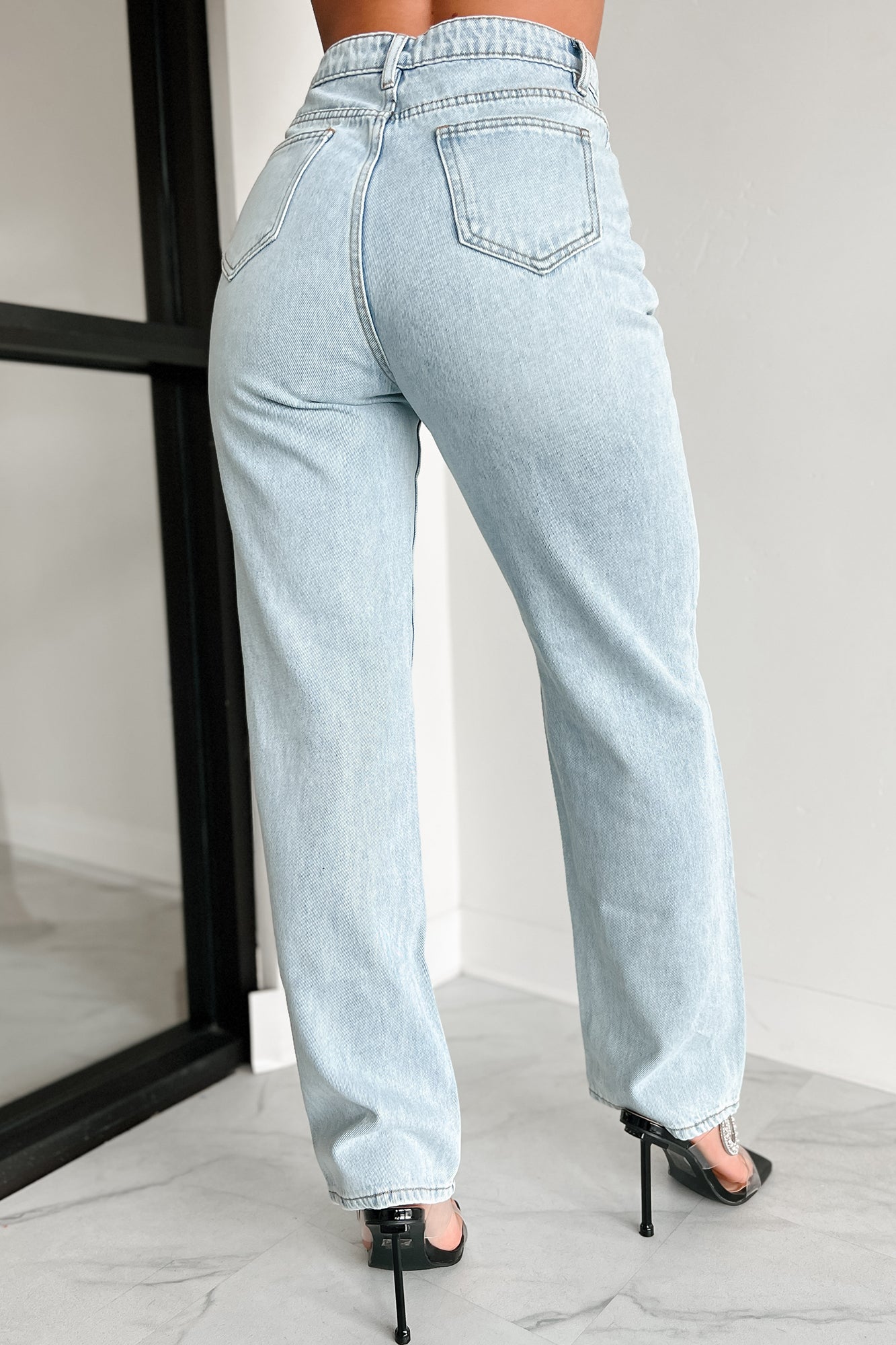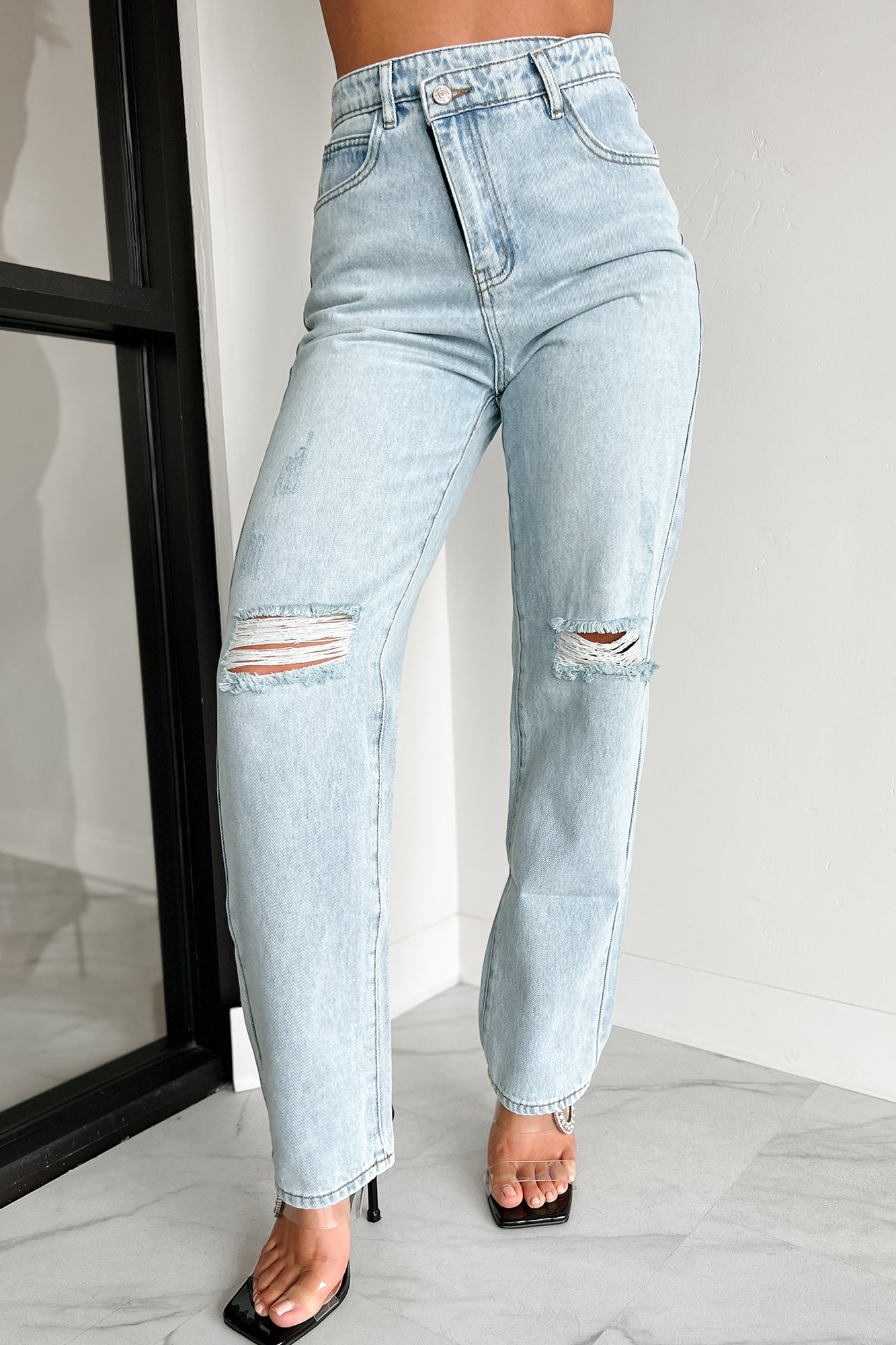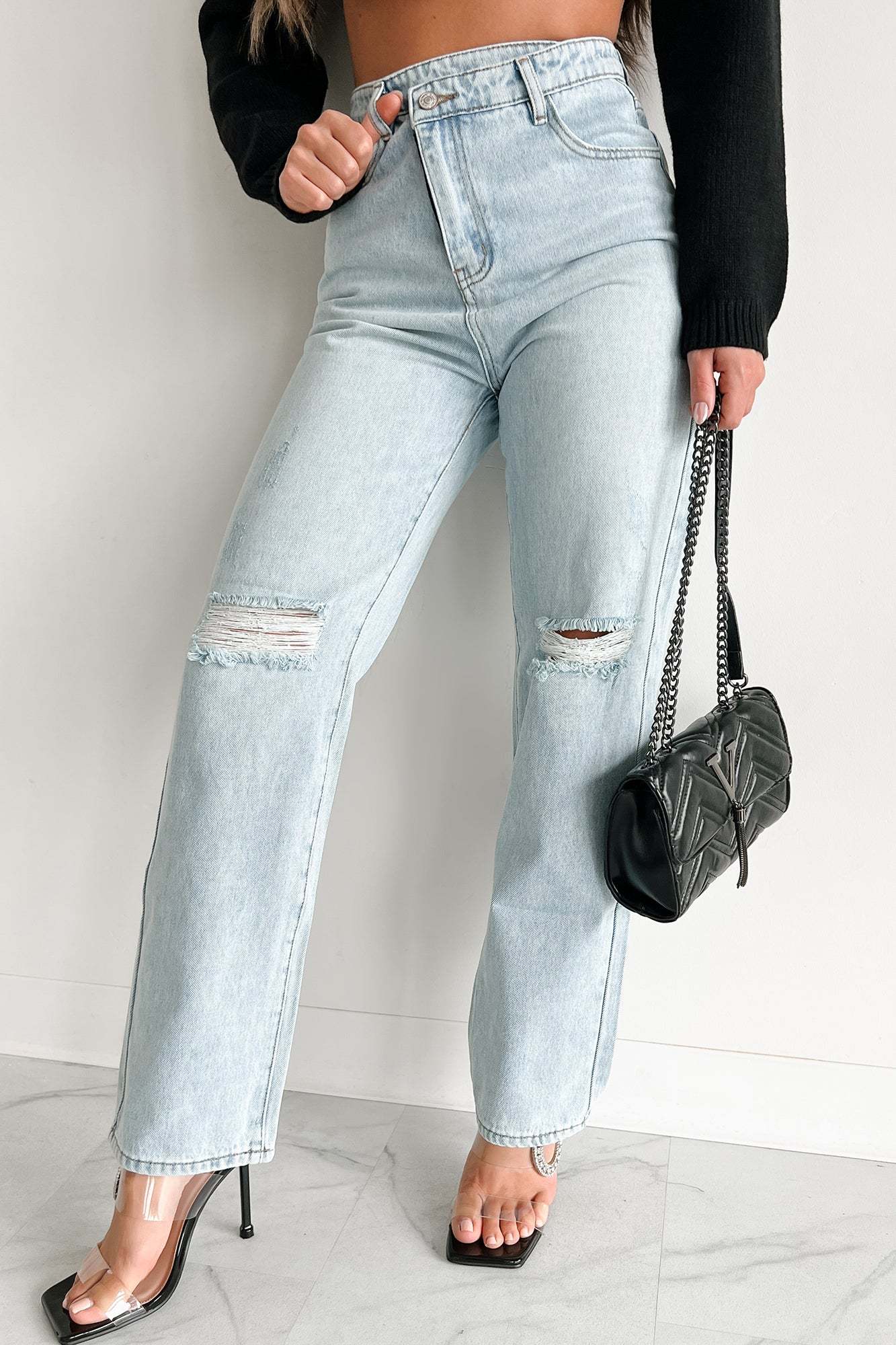 Hayden High Waisted Cross-Over Mom Jeans (Light)