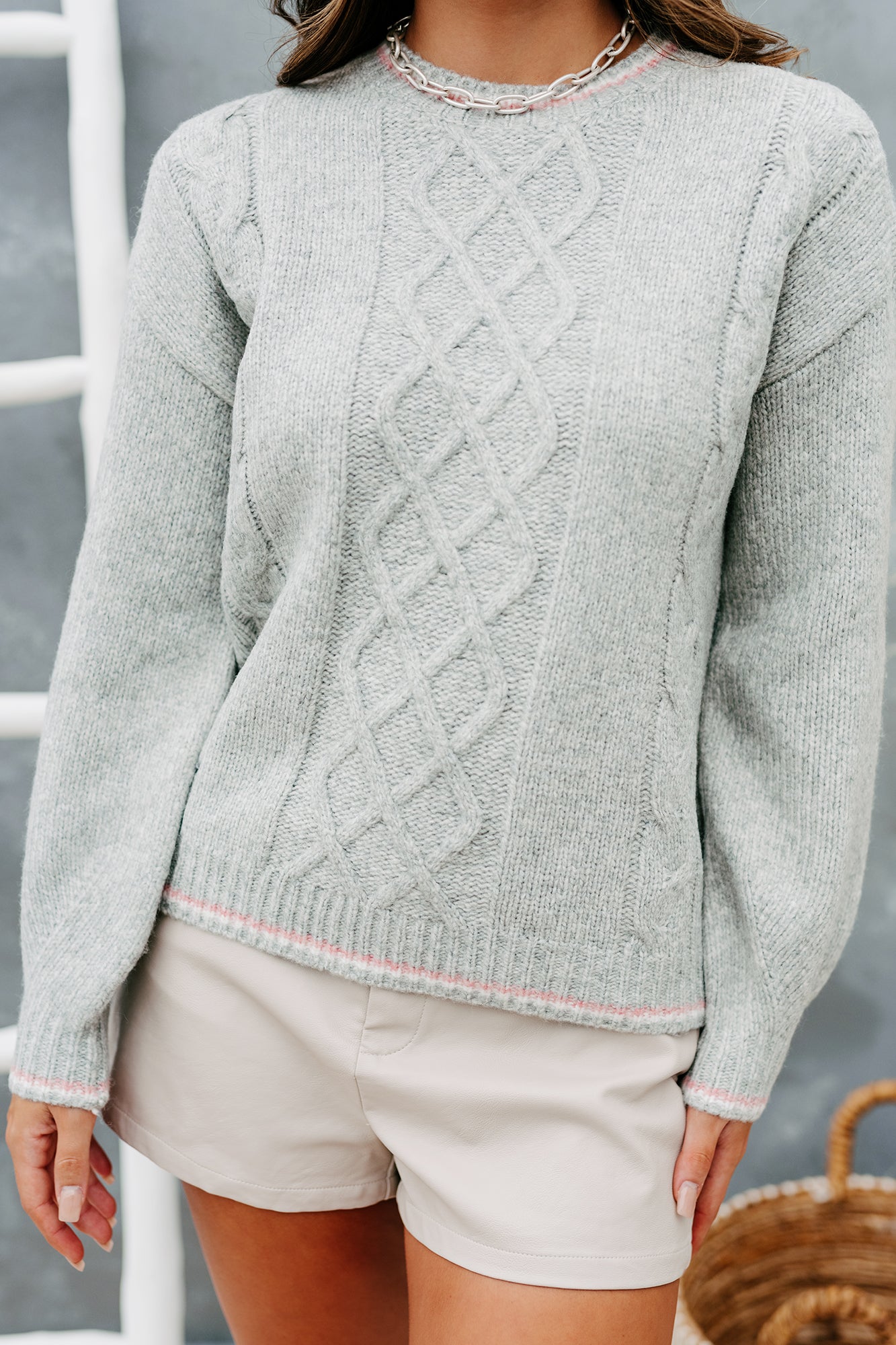 It's An Easy Decision To Say "Yes" To This Heather Grey. Cable Knit Sweater!