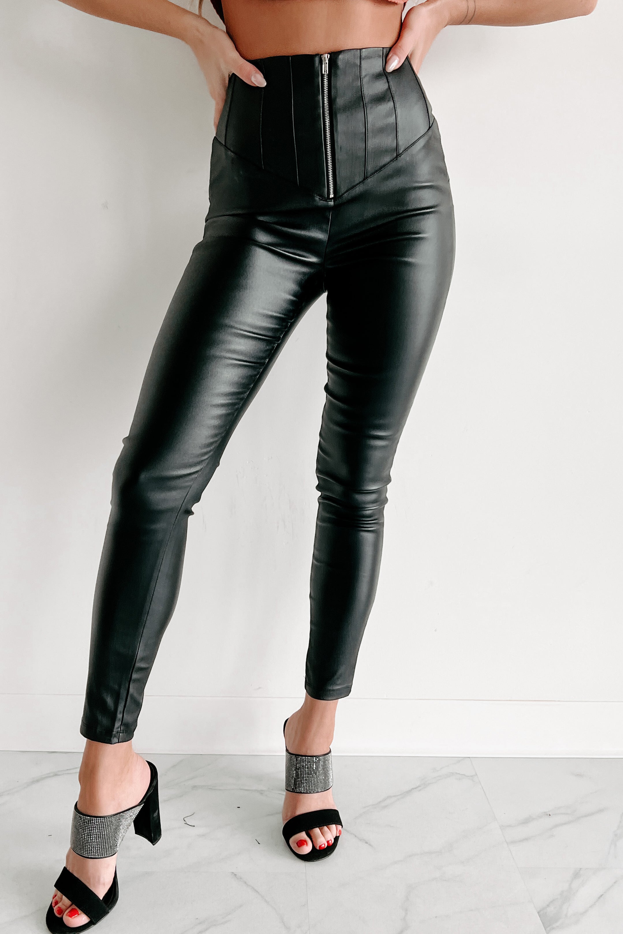 Hide Your Crazy Zipper Front Faux Leather Pants (Black)