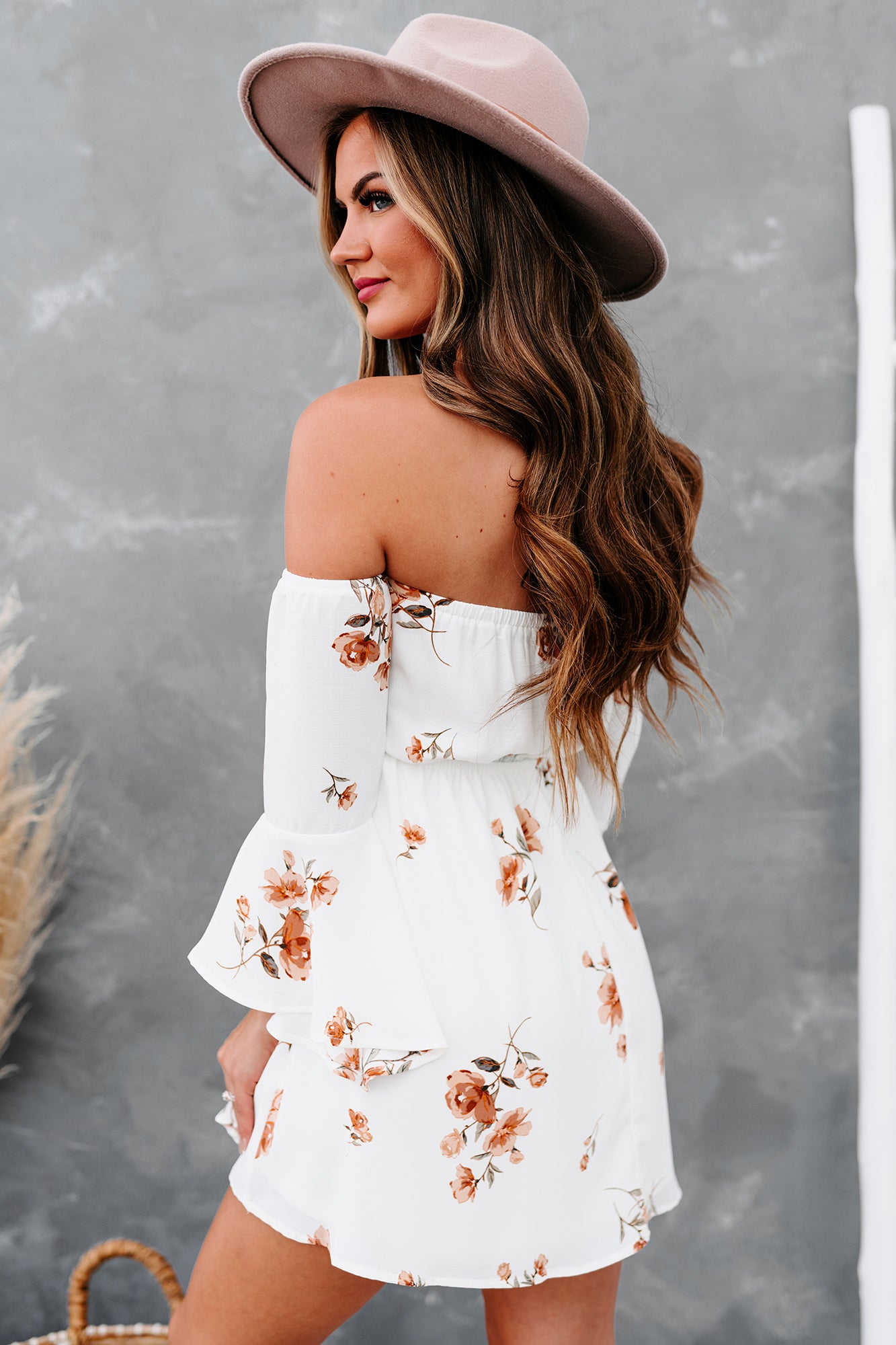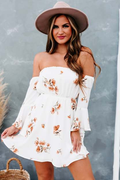 Hope Is A Heartache Floral Off The Shoulder Dress (Ivory/Peach)