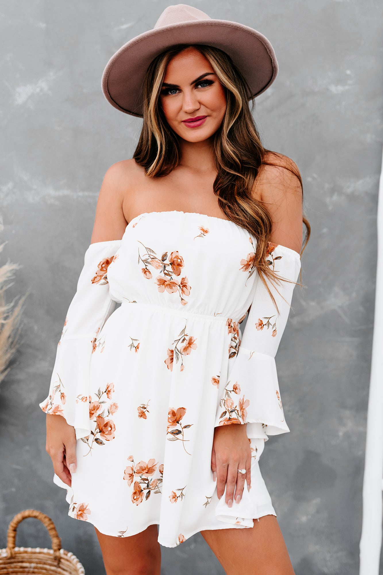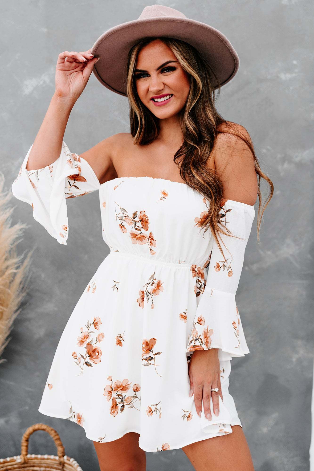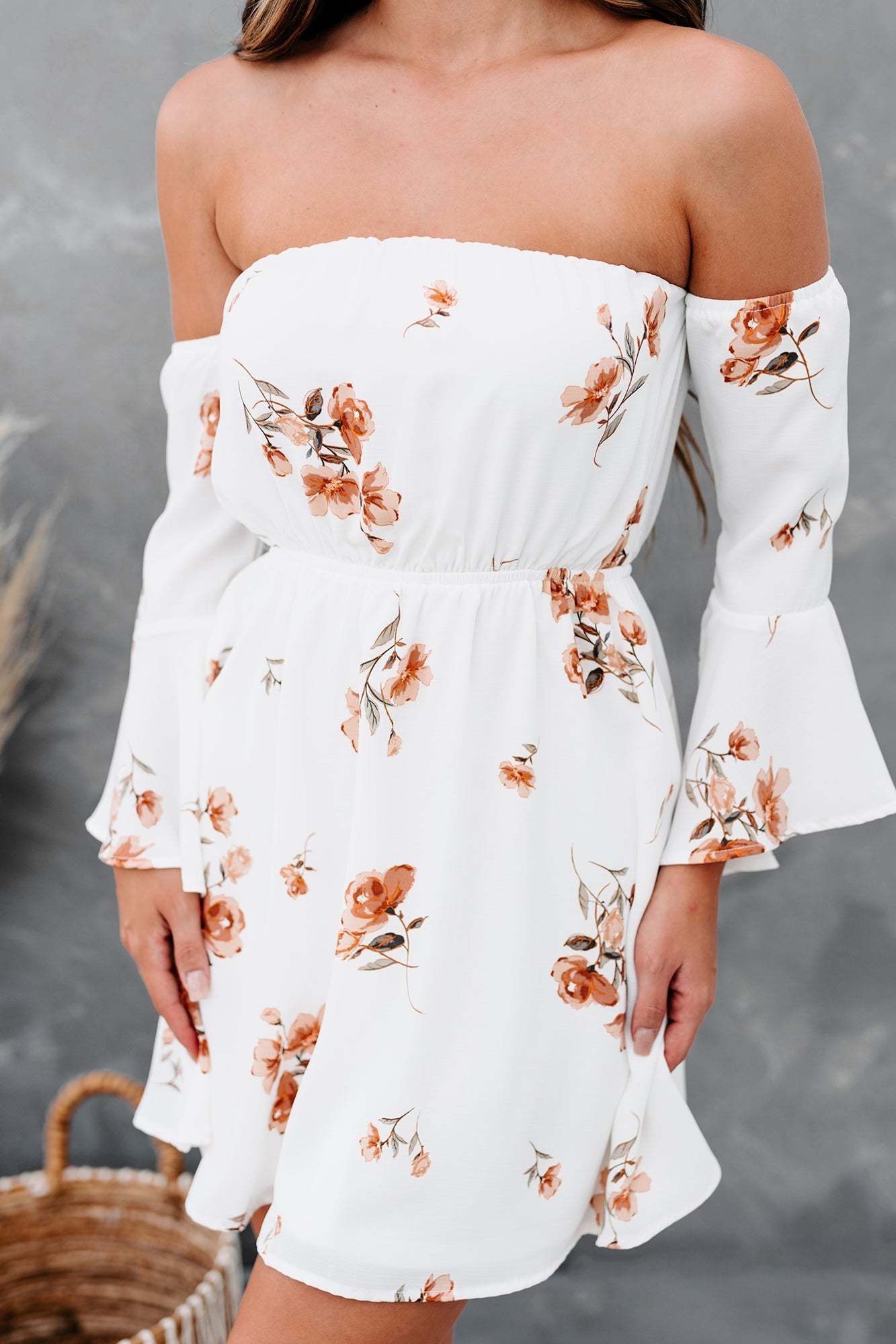 Get The Sunhats & Picnic Basket! This Flowy & Floral. Off The Shoulder Dress Is A Picnic Staple!