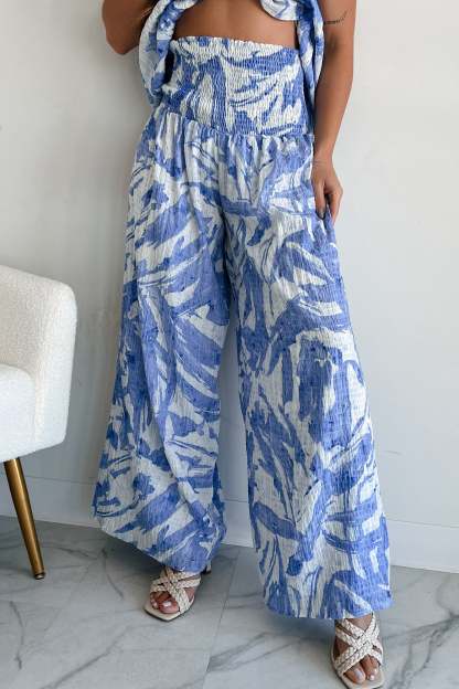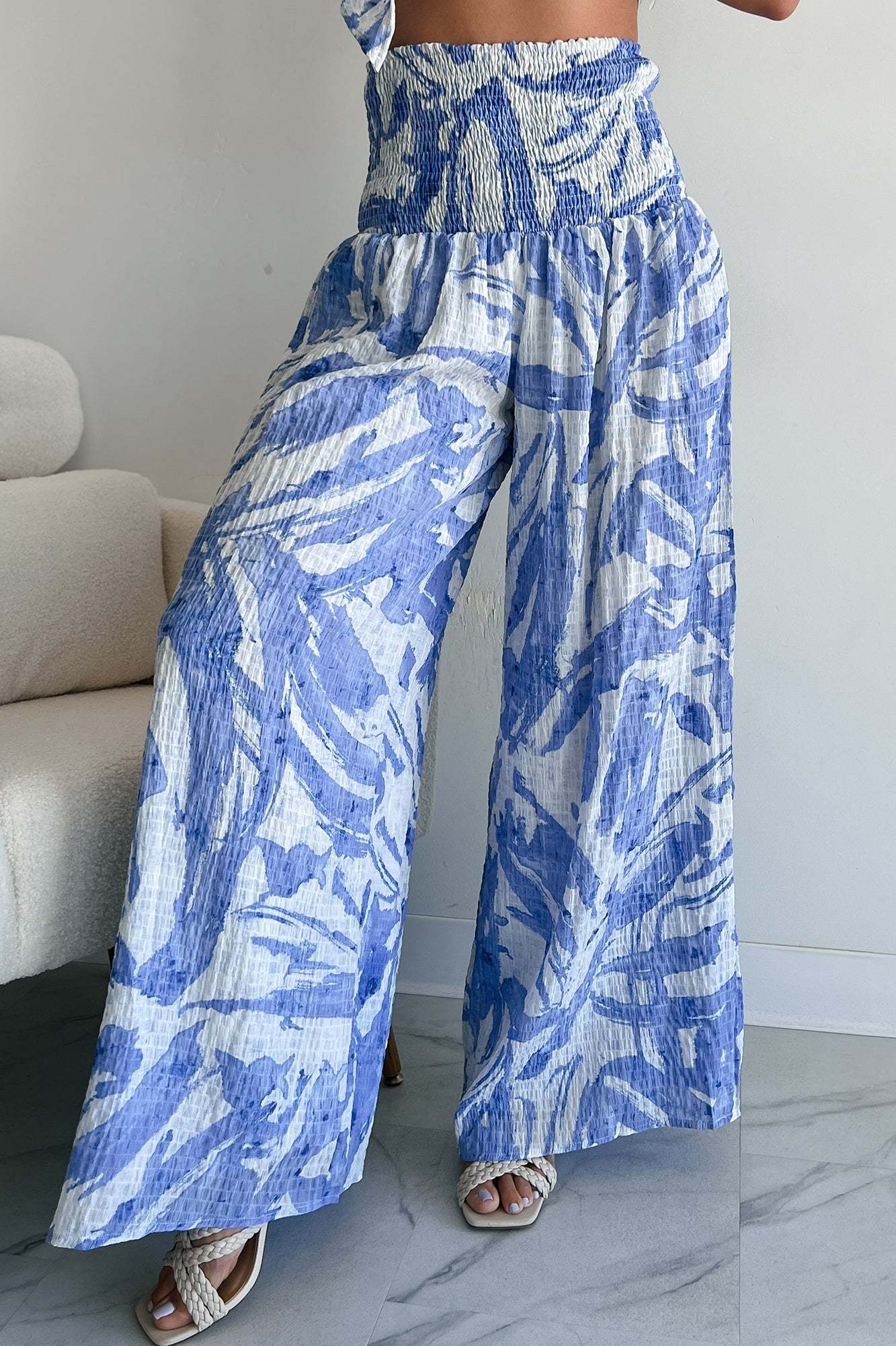 Iconic Option Printed Smocked Wide Leg Pants (Blue)