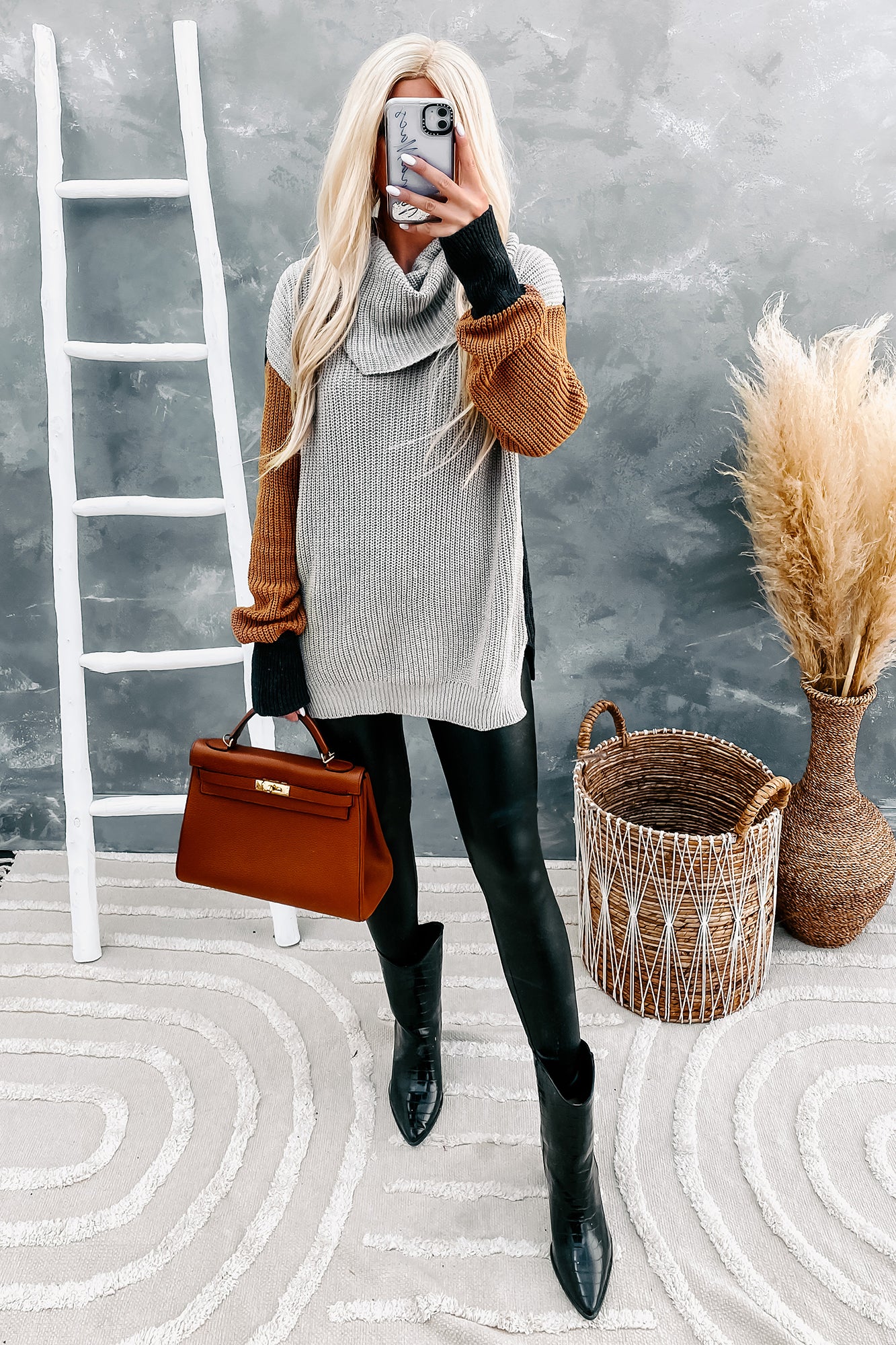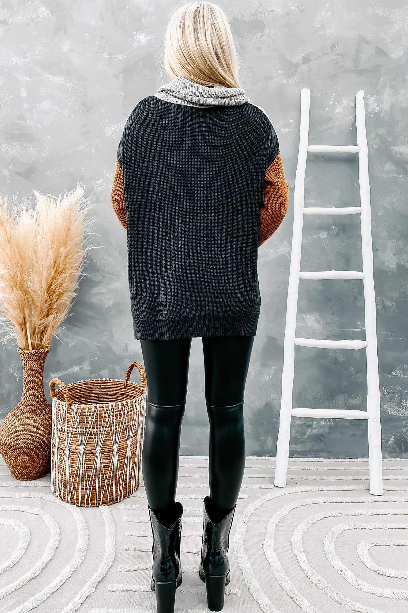 Ida Color Block Cowl Neck Sweater (Grey/Black/Brown)
