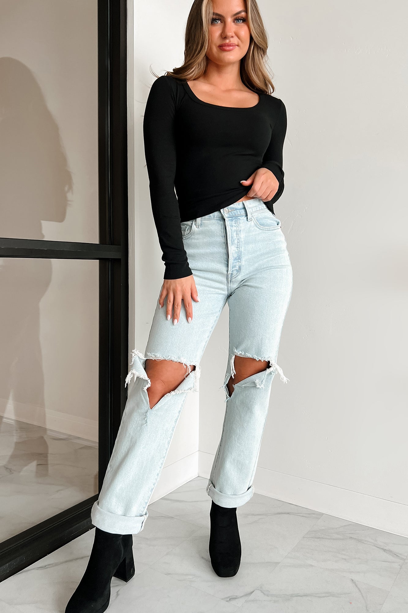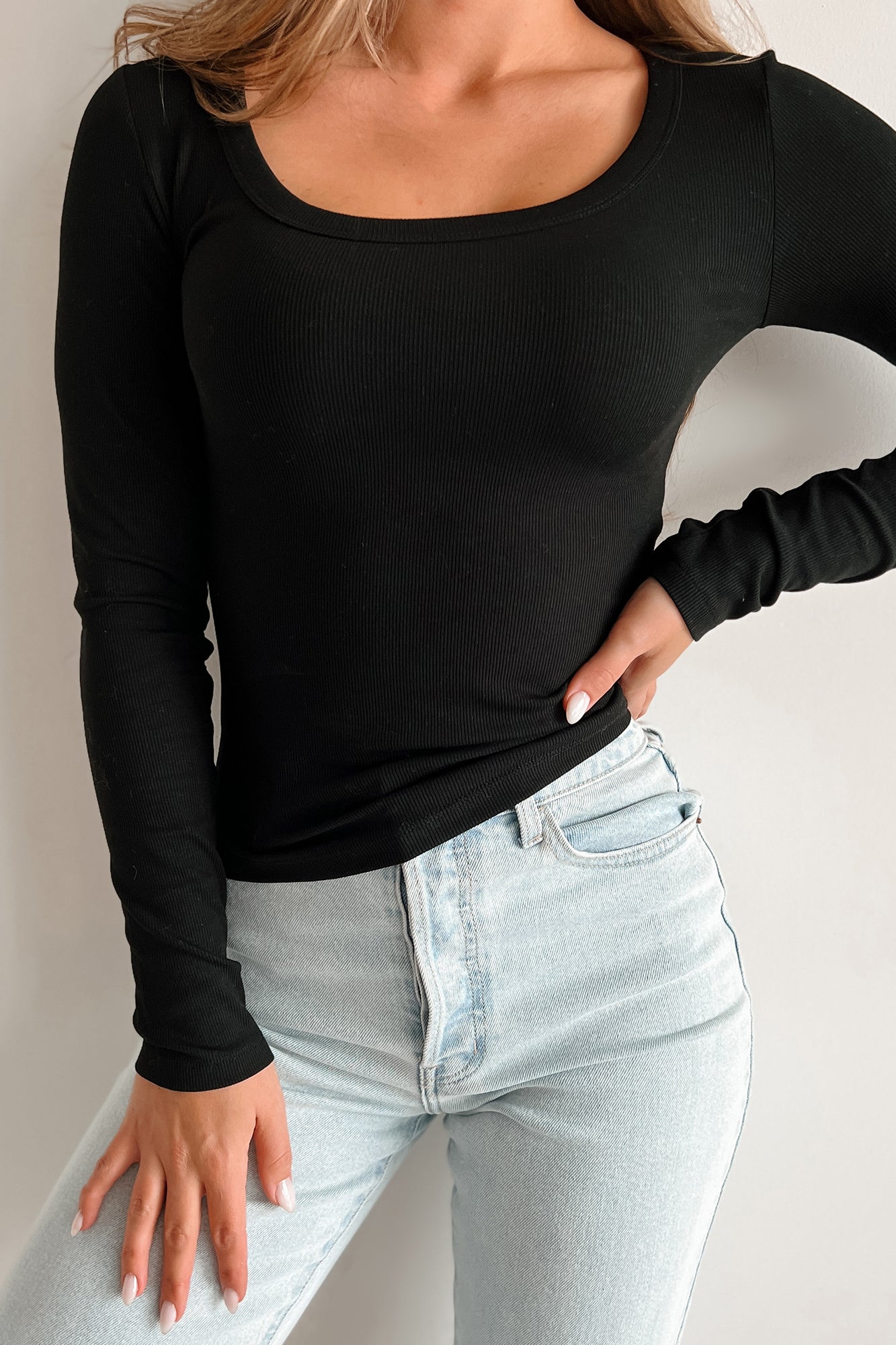 I'm On Your Side Scoop Neck Long Sleeve Top (Black)