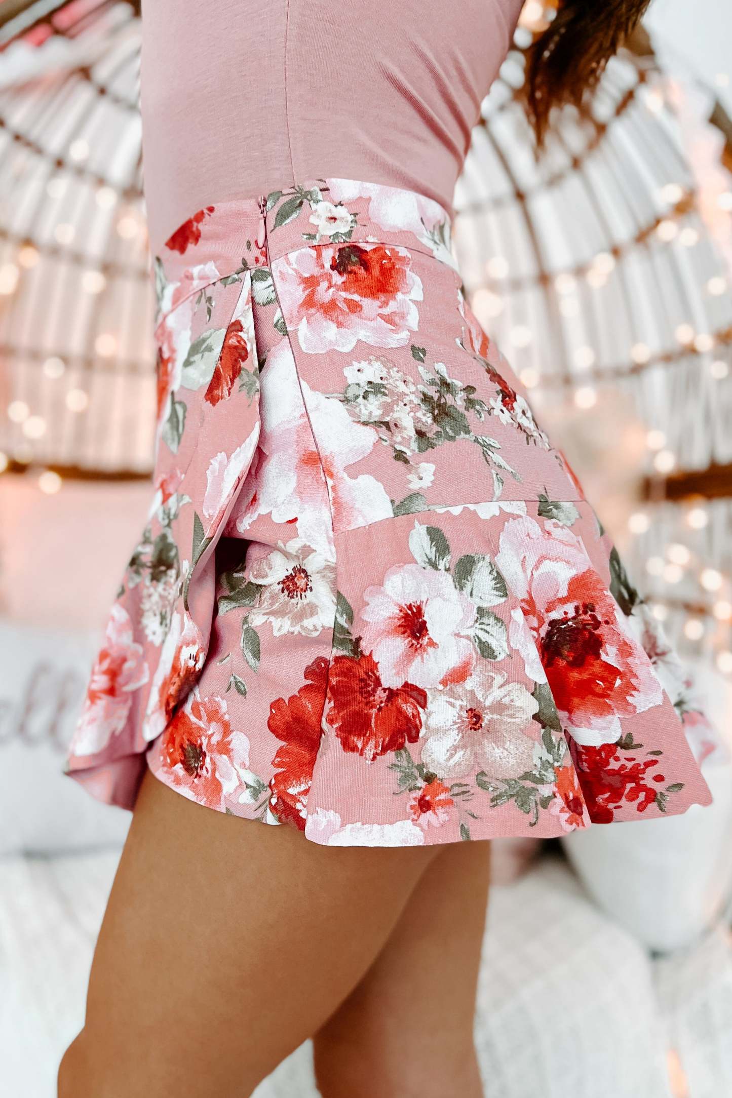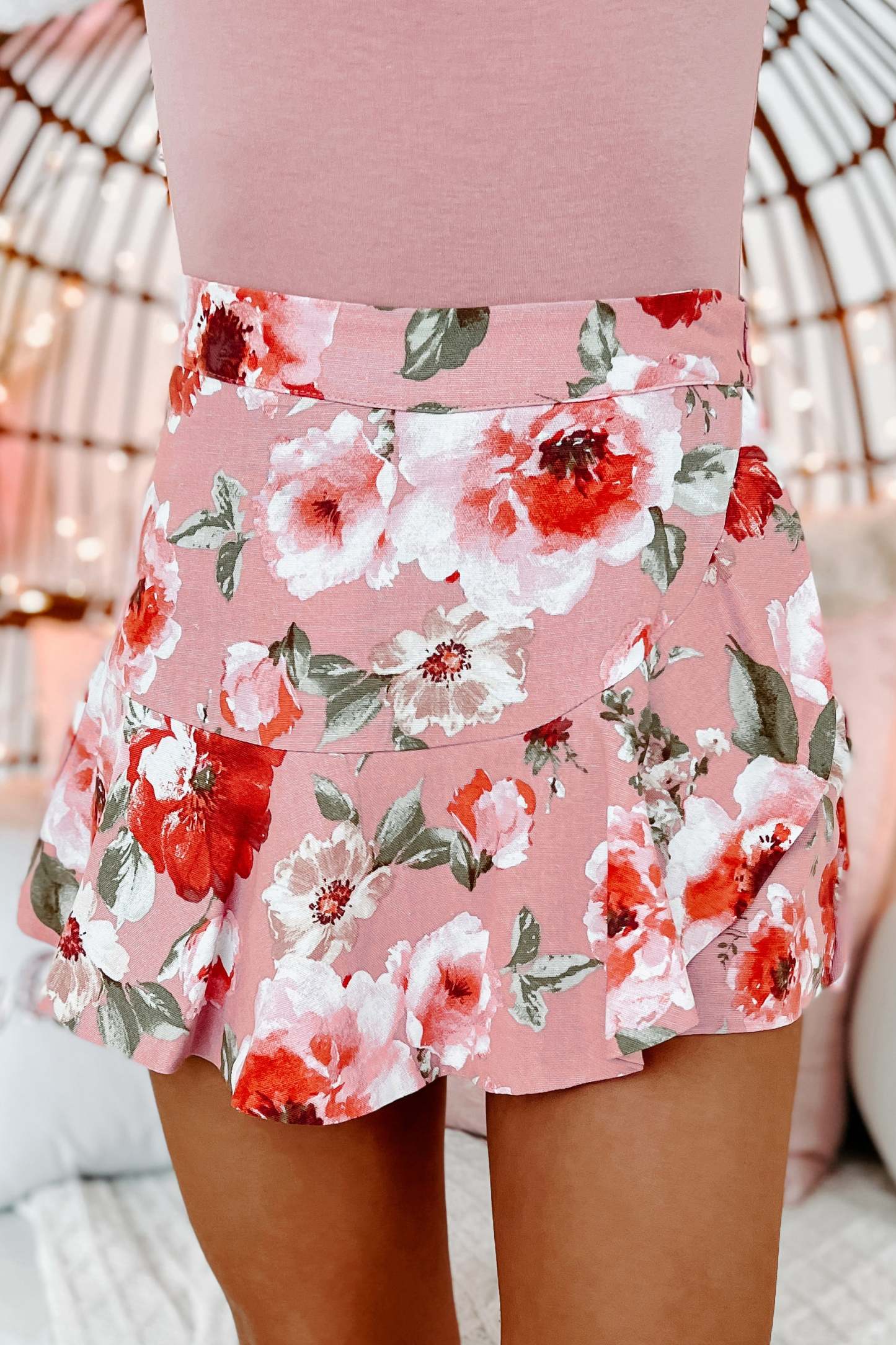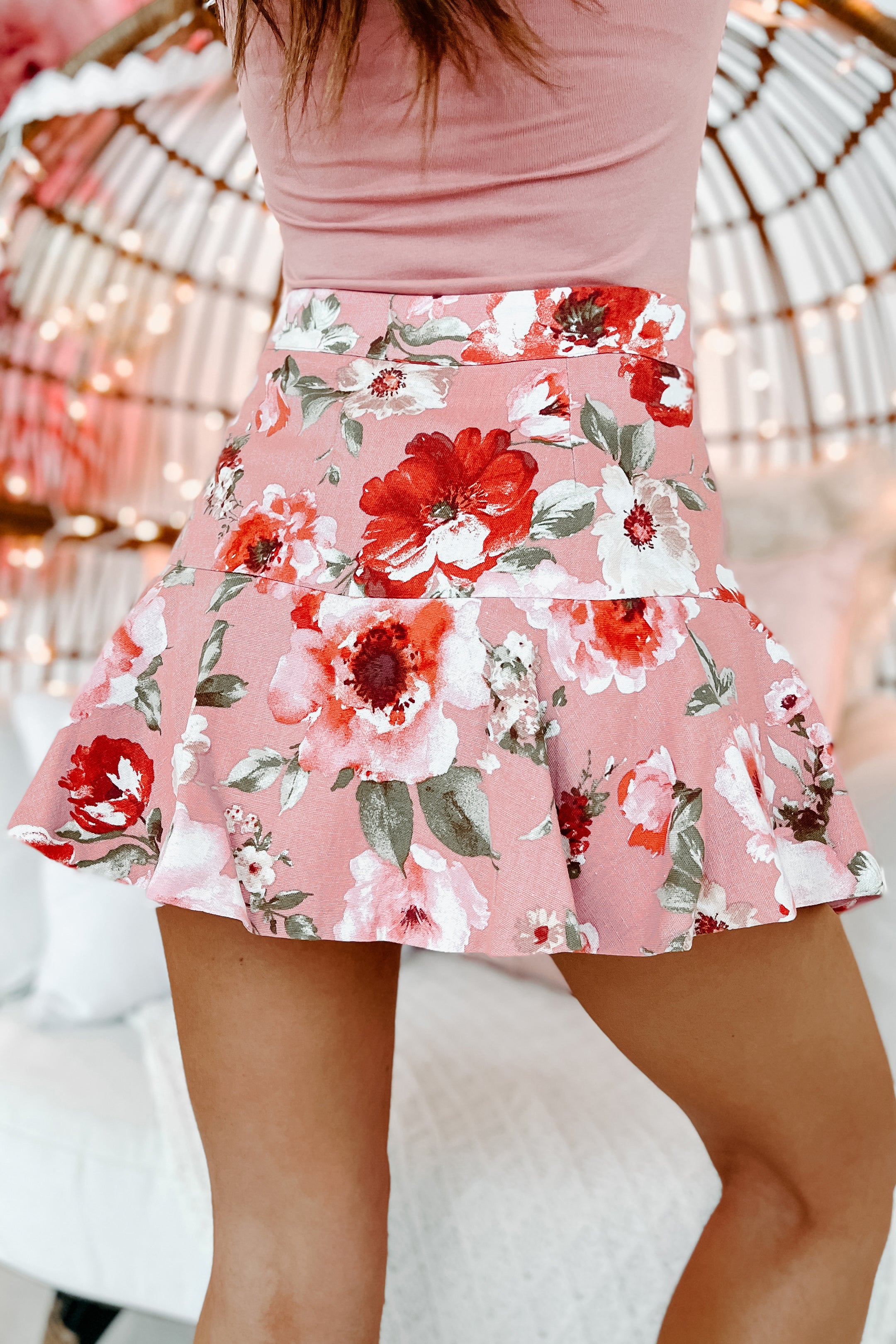 In A Ruffle Floral Skort (Rose)