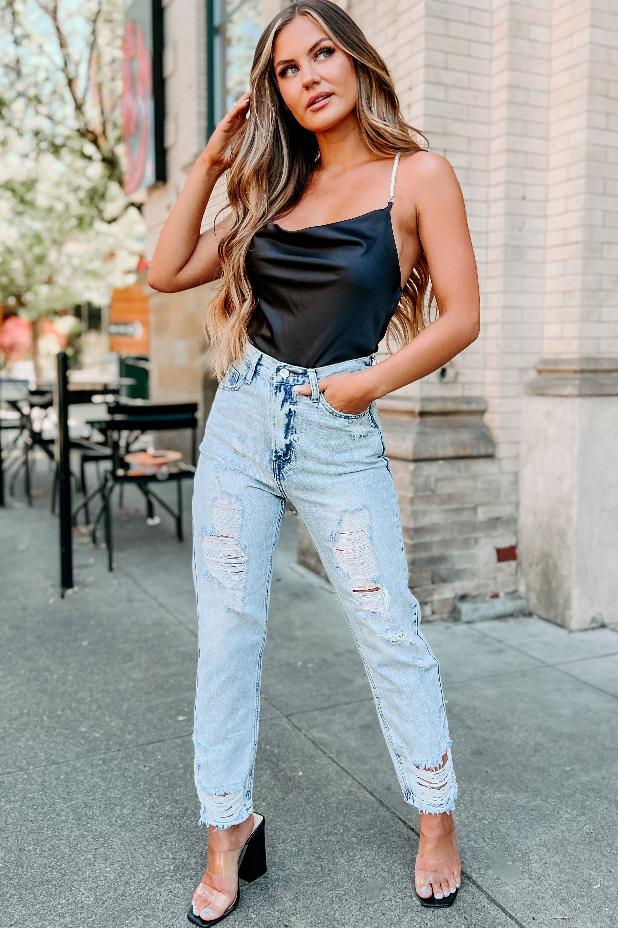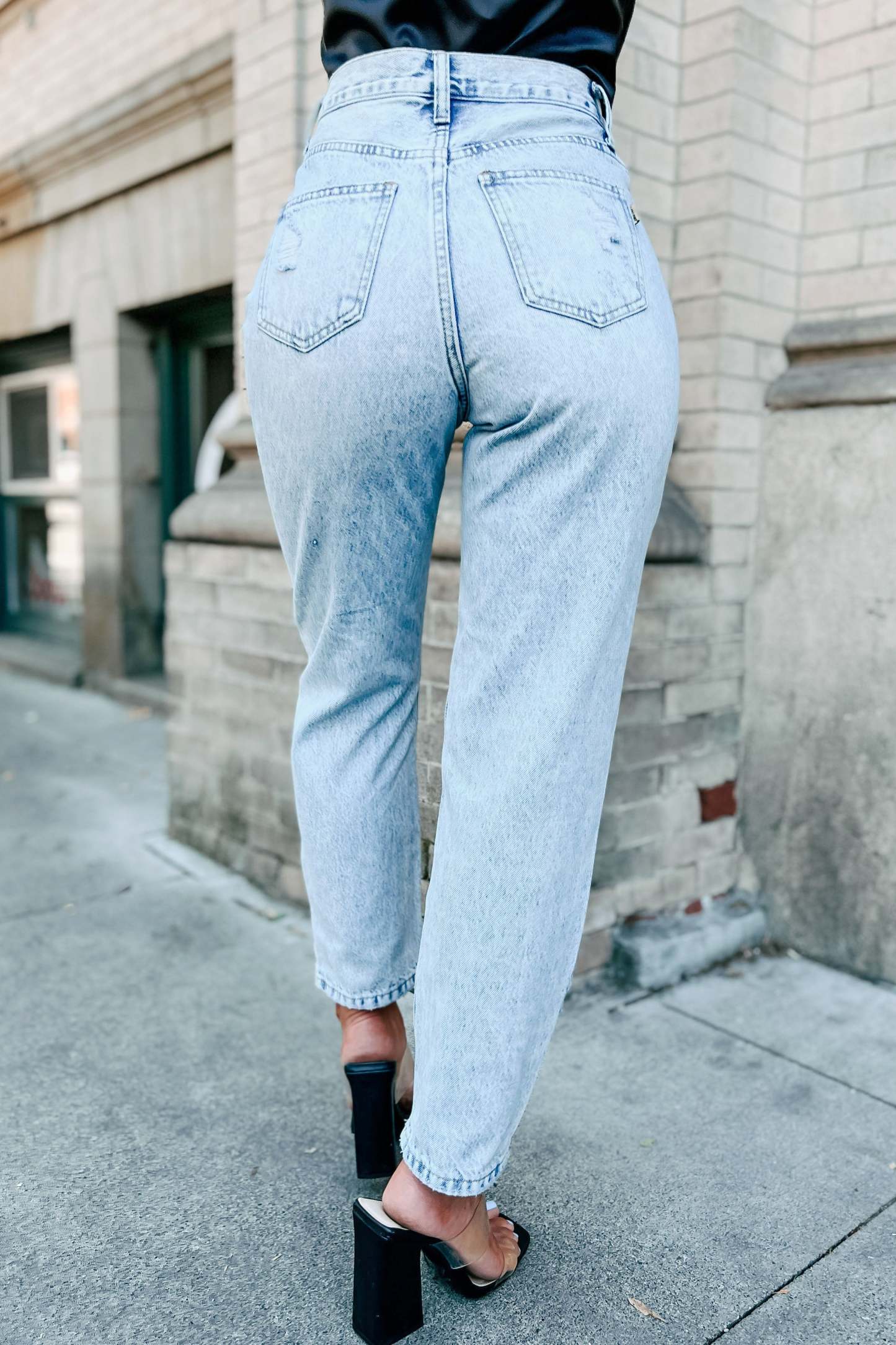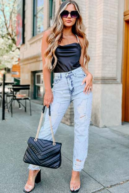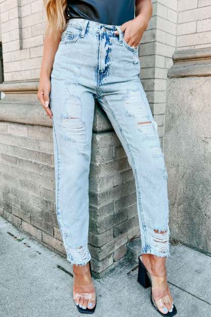 It All Begins High Rise Distressed Straight Leg Jeans (Medium)