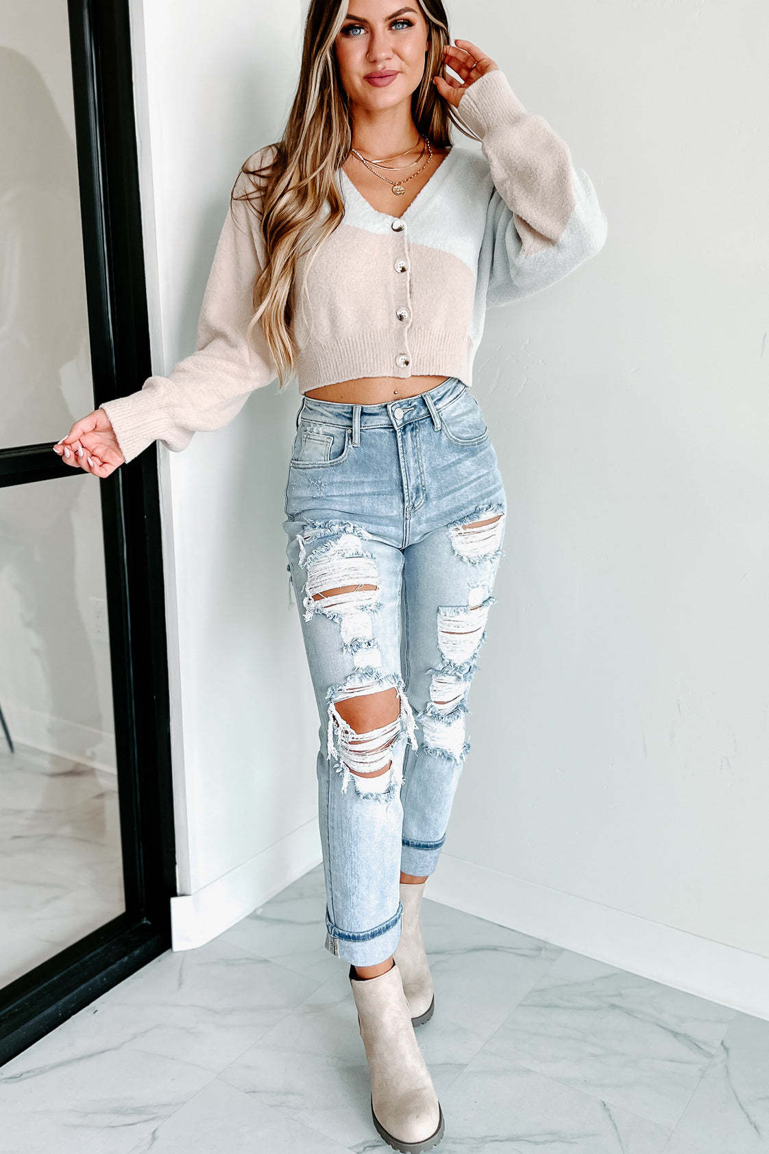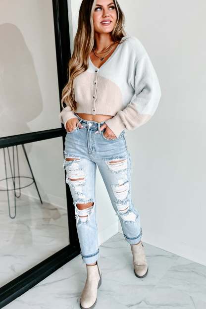 Joyful Daydreams Cardigan Top (Grey/Taupe)