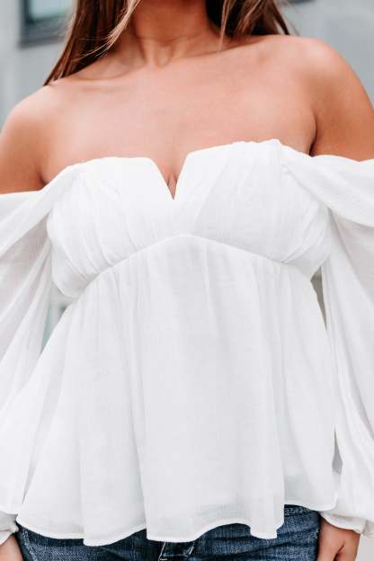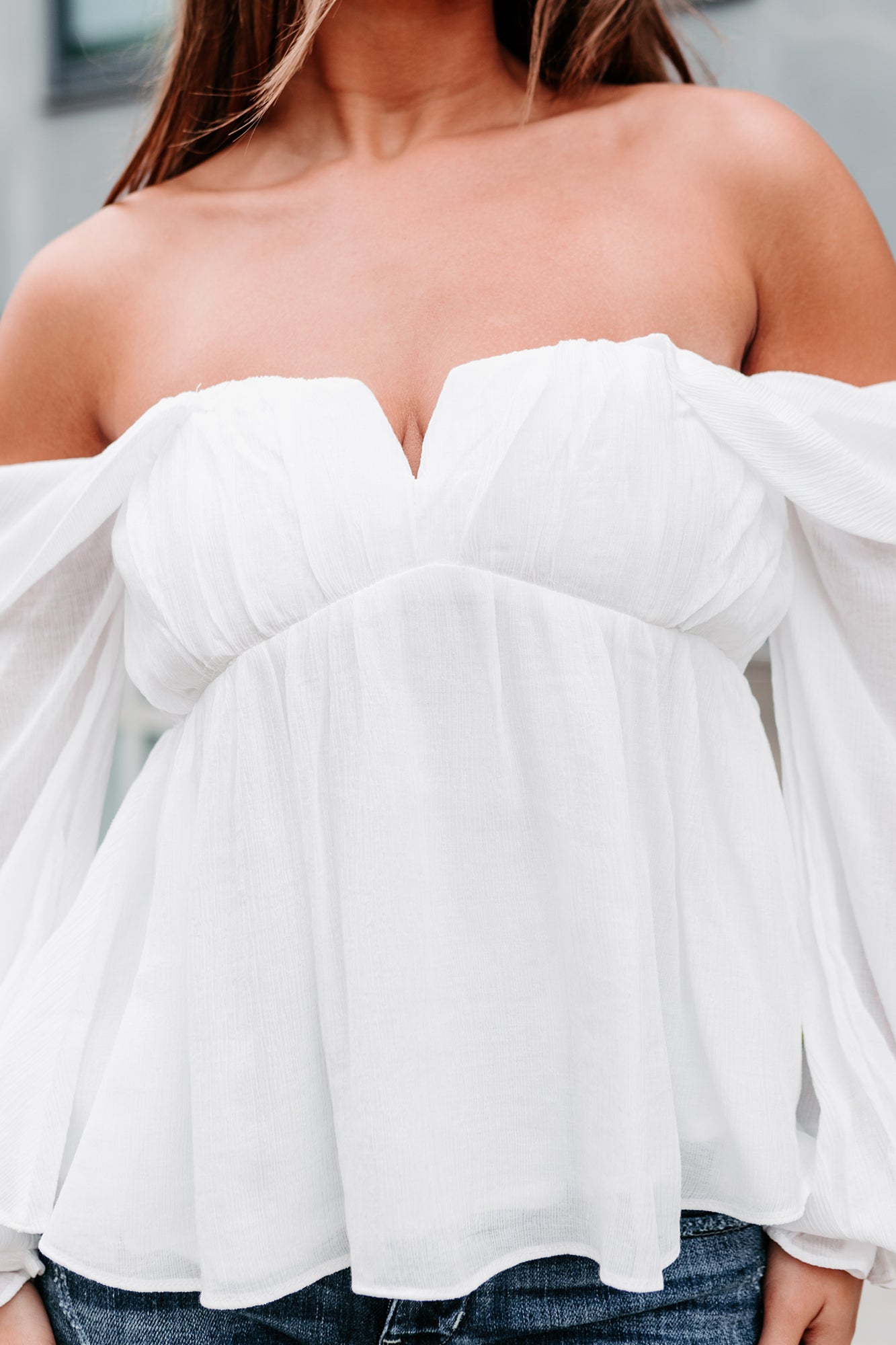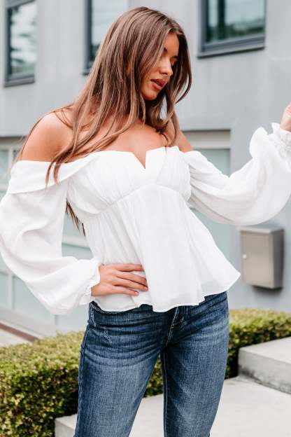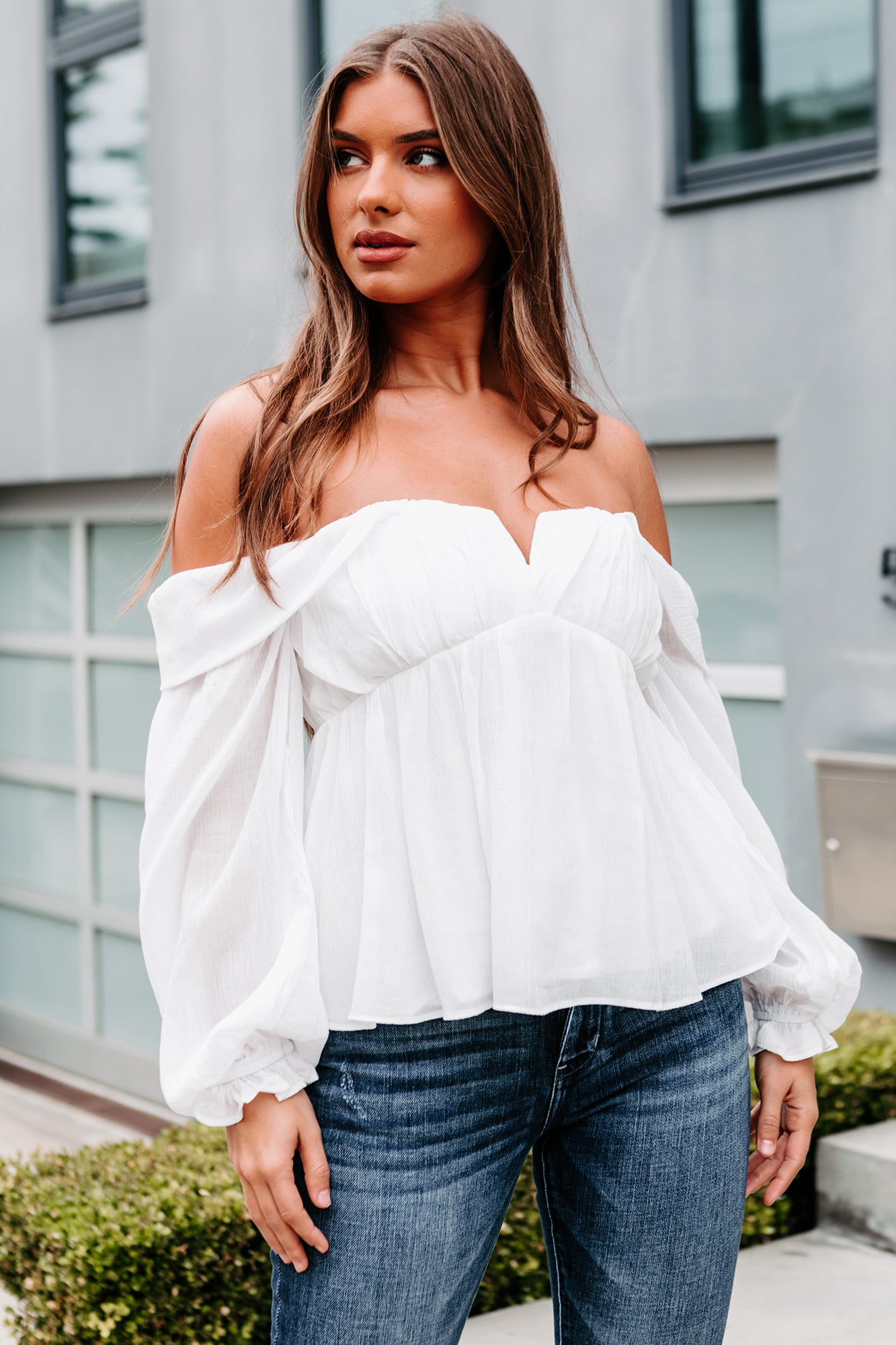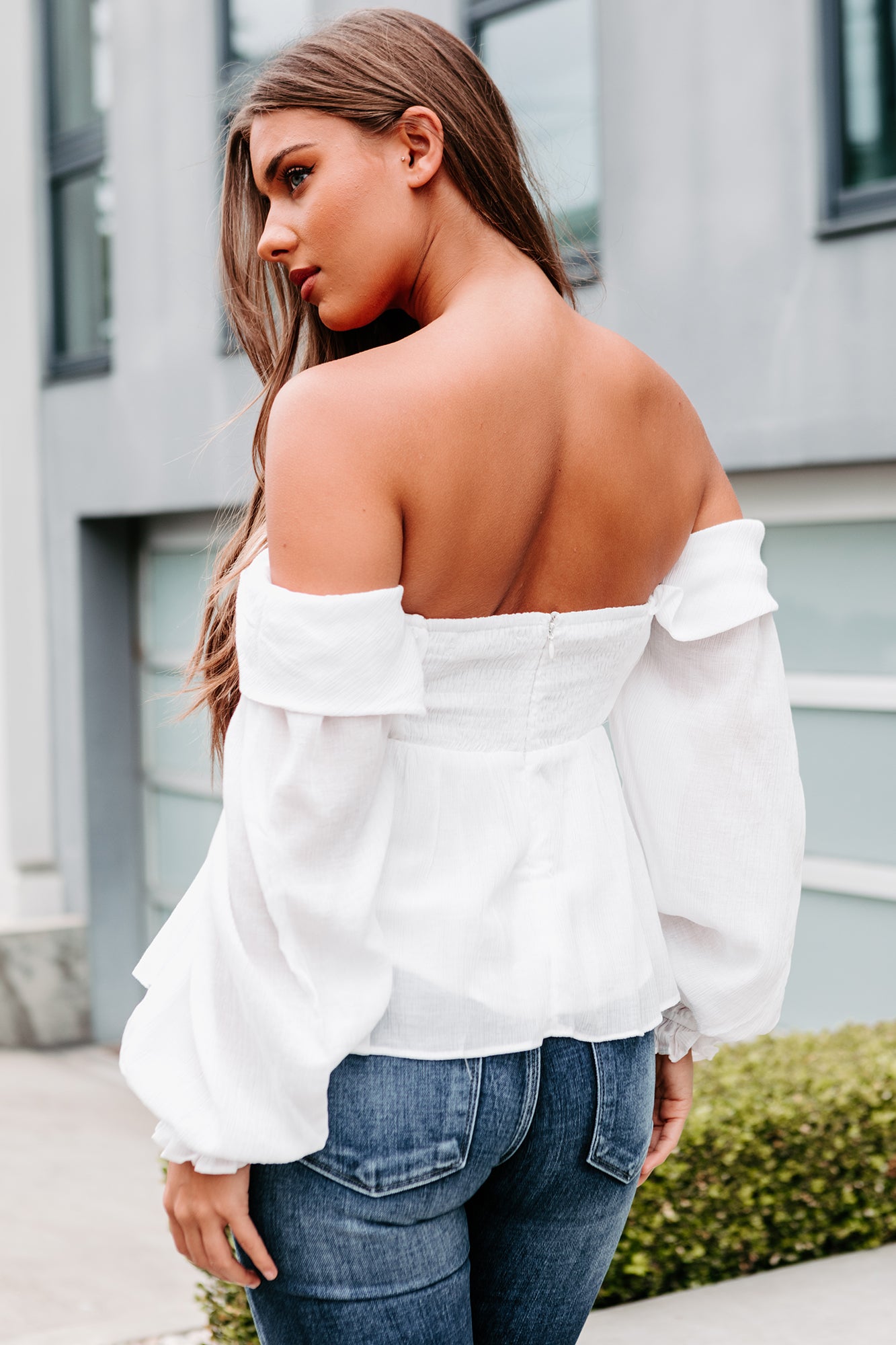 Kathryn Off The Shoulder Long Sleeve Top (White)