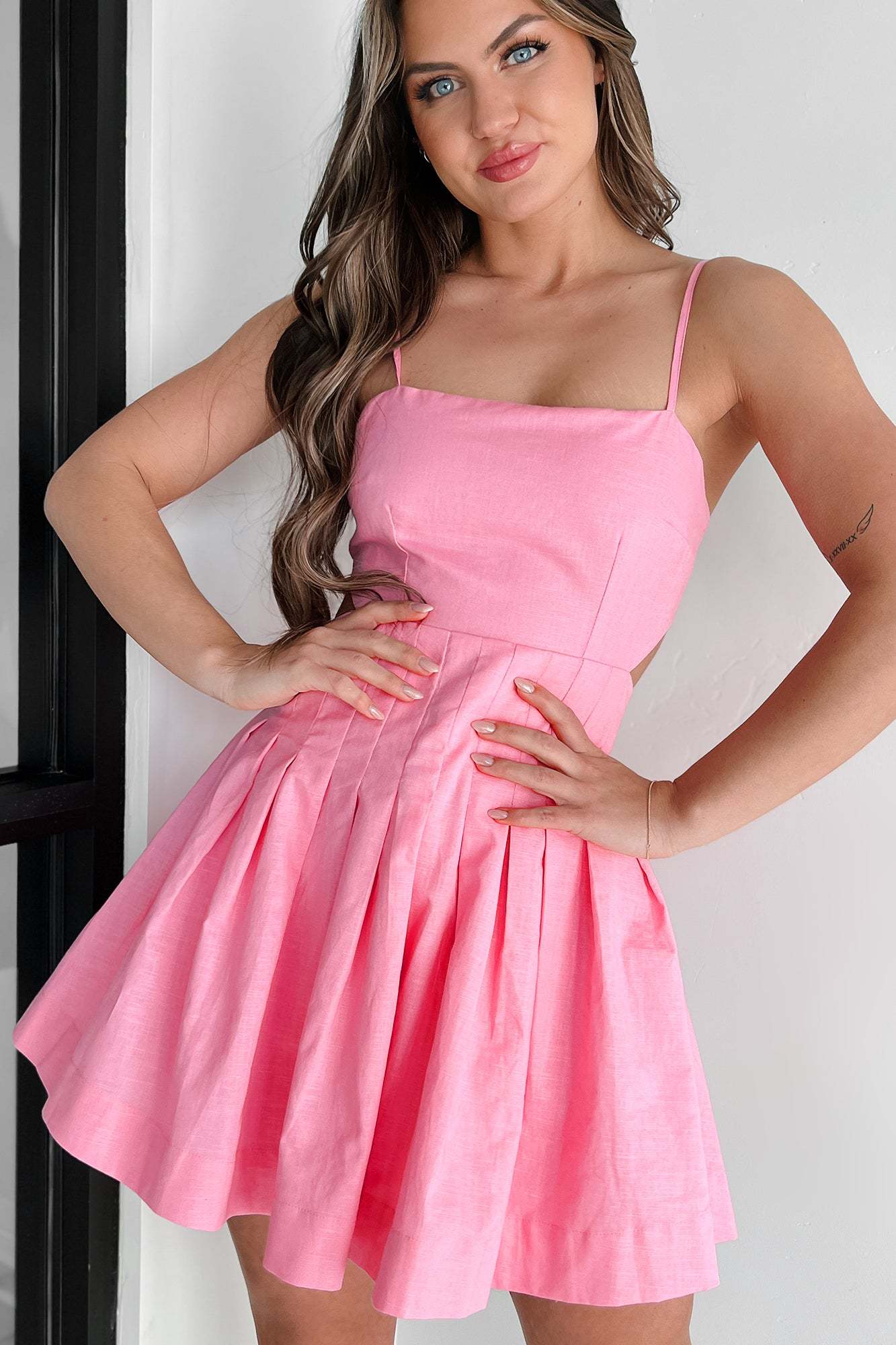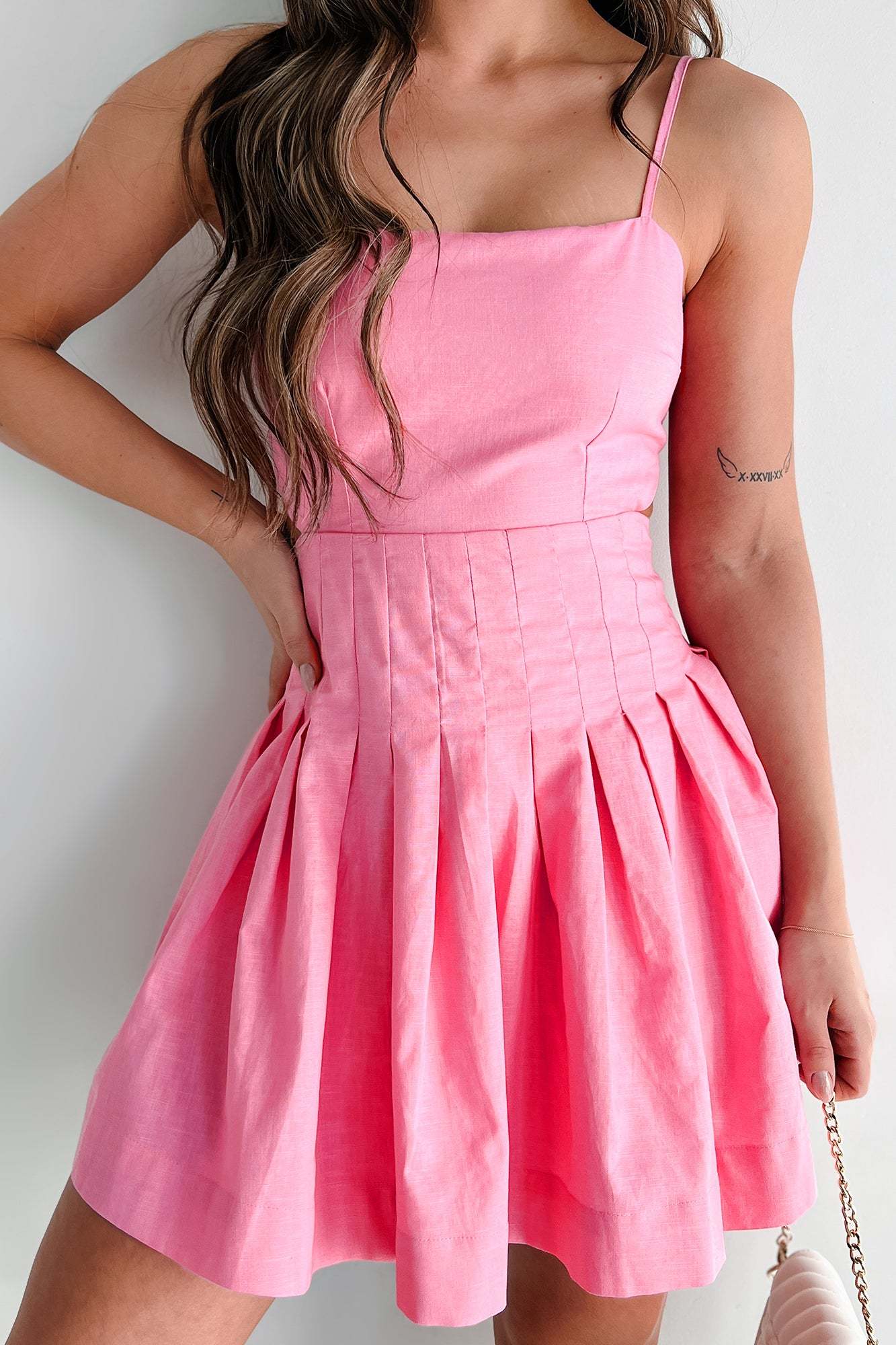 Lighting Up The Room Pleated Tie-Back Mini Dress (Candy Pink)