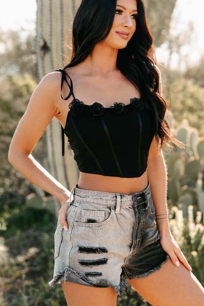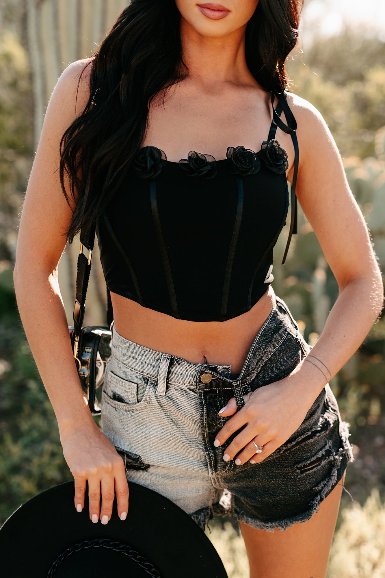 Lush Blooms Tie Strap Mesh Corset Top (Black)