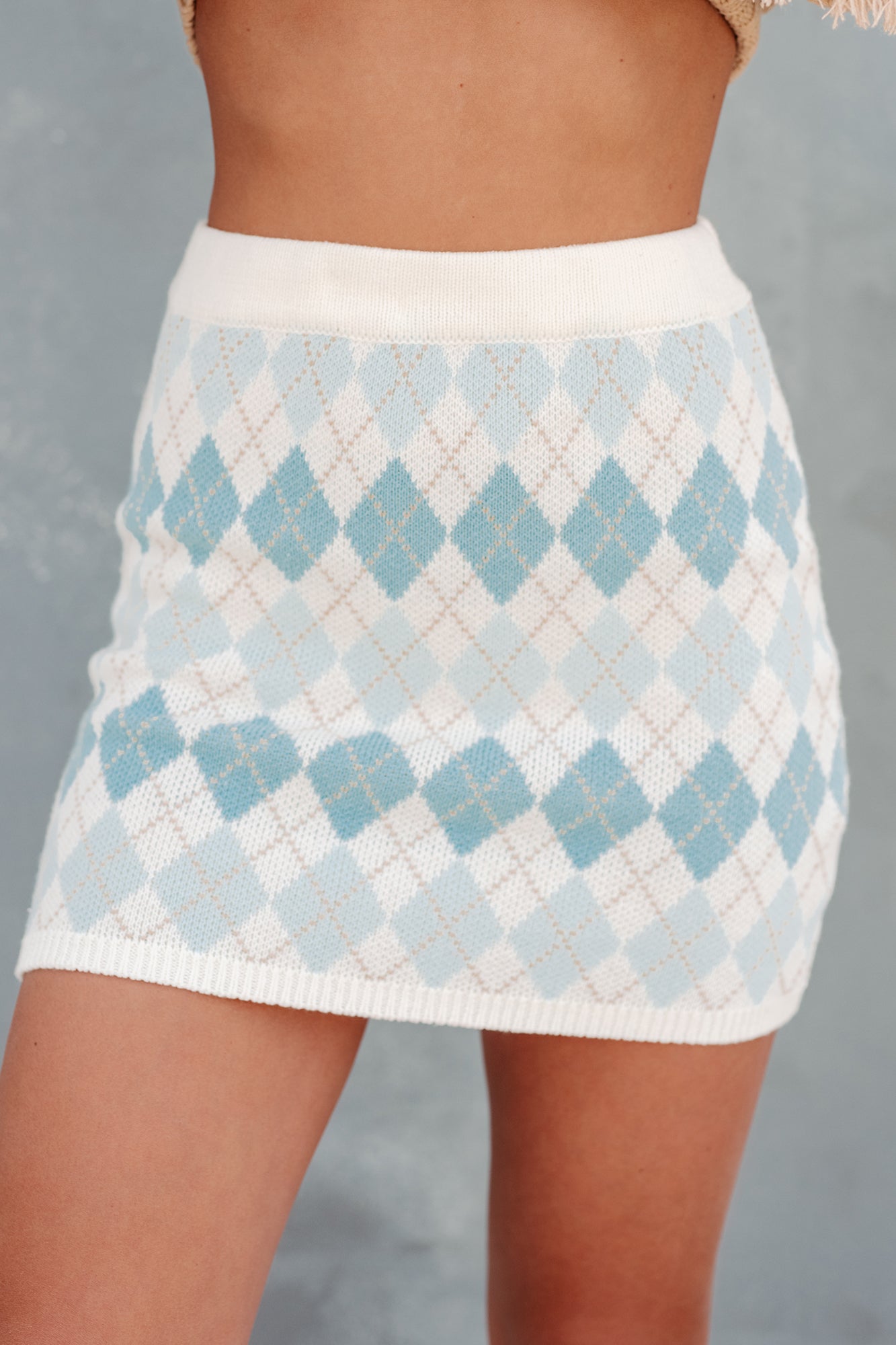 Making Smart Decisions Sweater Knit Argyle Print Skirt (Cream)